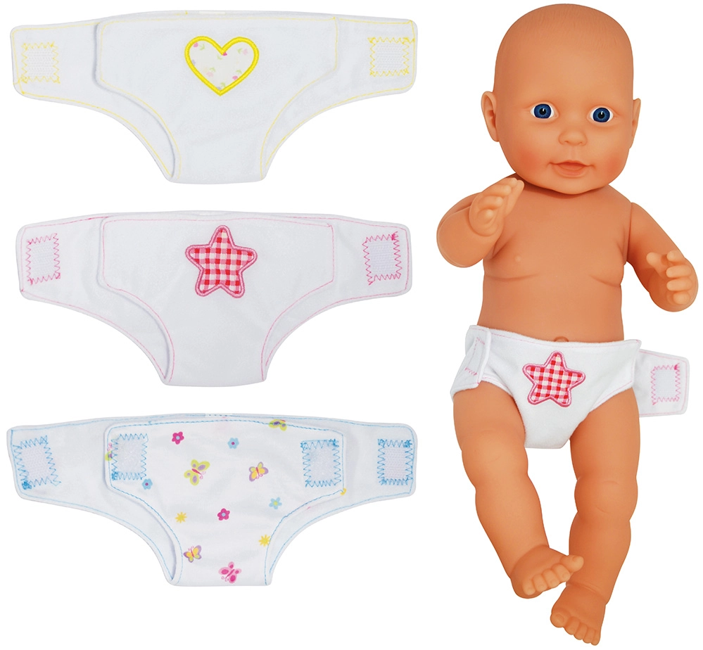 Praktičen komplet bombažnih pleničk za punčke velikosti 46 cm znamke Dolls World bo navdušil vse male skrbnice. Mehek material olajša oblačenje in slačenje, medtem ko raznobarvni vzorci poskrbijo za še več zabave pri previjanju. Spodbuja ustvarjalnost, fino motoriko in empatične veščine otrok od 3. leta dalje.