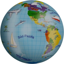 Praktična možnost dodatnega napihovanja zagotavlja, da žogo preprosto ohranite v ustrezni trdoti. Zadošča običajna tlačilka za kolo ali kompresor (nista priložena). Privlačen motiv globusa spodbuja radovednost in žogo spremeni v priljubljenega spremljevalca za igre na prostem in v vodi.