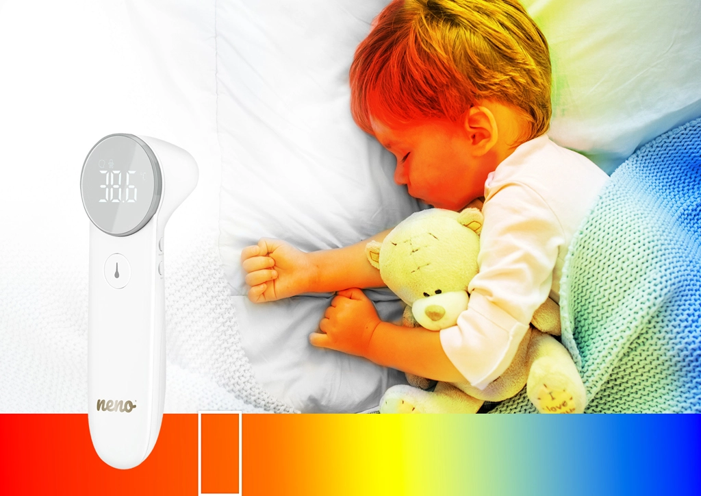 Zahvaljujoč infrardeči tehnologiji zagotavlja zanesljive rezultate v območju 22–43 °C. Tihi način boste cenili pri preverjanju temperature spečega otroka. Pregleden LED-zaslon je enostavno berljiv podnevi in ponoči, pomnilnik 20 zapisov pa omogoča spremljanje poteka temperature. Napajanje zagotavljata 2× AAA bateriji (priloženi), naprava pa se po 10 s nedejavnosti samodejno izklopi.