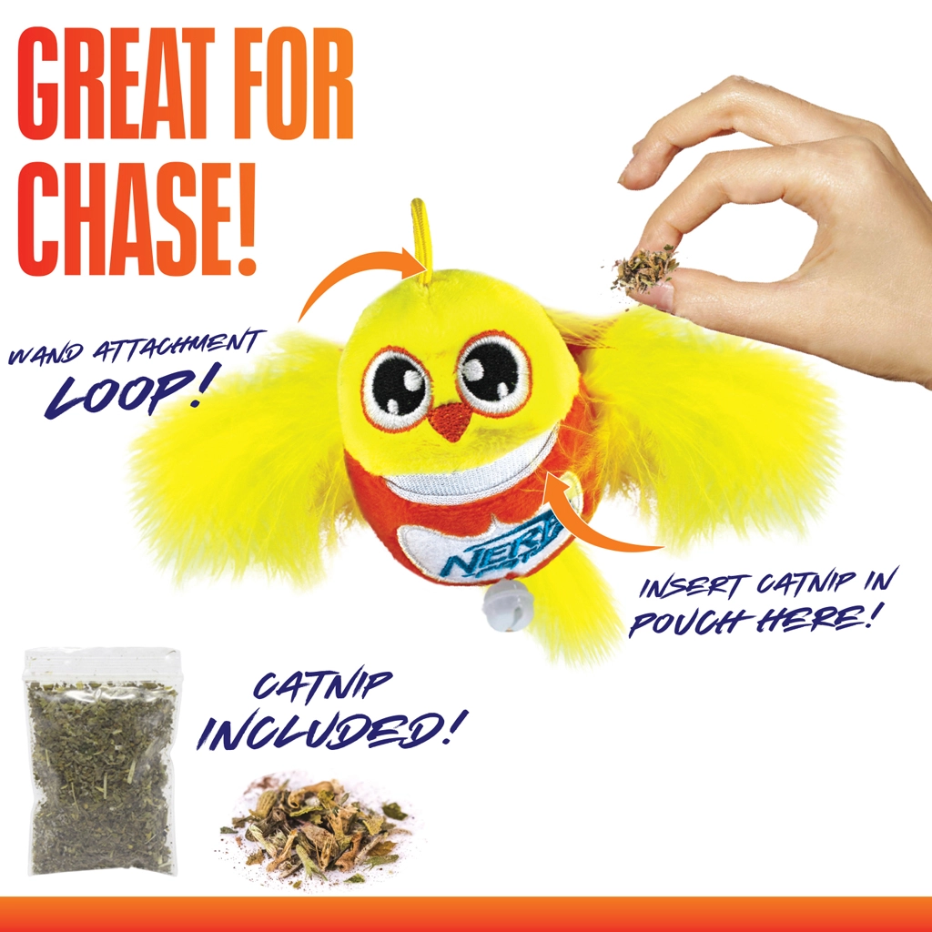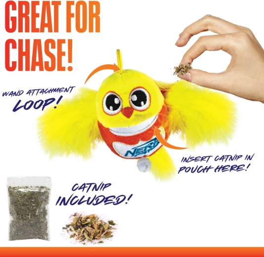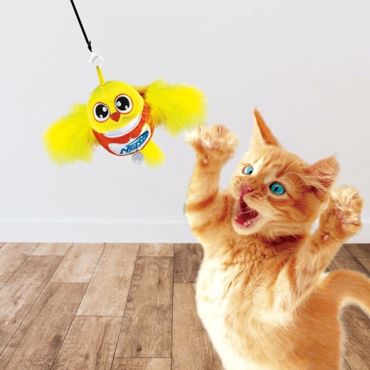 Interaktivna igrača za mačke NERF CAT prinaša zabavo in urjenje lovskih nagonov. Plišasti ptiček na palički z vrvico in nežno zvenečim zvončkom posnema gibanje plena ter spodbuja gibanje, reflekse in miselno stimulacijo. Vključena je mačja meta za še večji interes in navdušenje nad igro.