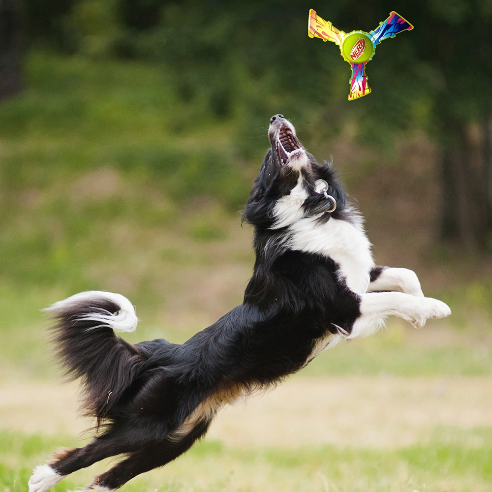 Trikraka zasnova s centralnim oprijemom pomaga igrači stabilno drseti po zraku, tako da ima vaš pes več časa za ujemanje.
