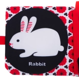 Pripravite svojega otroka na čarobno pot odkrivanja sveta oblik in vzorcev s to čudovito knjigo. Knjiga je oblikovana v kontrastnih barvah, kot so črna, bela in rdeča, ki so idealne za vizualno stimulacijo majhnih otrok. Knjiga vsebuje štiri tekstilne strani z živalmi, kot so ptiček, zajček, sova, lisica, medved, veverica in rakun.