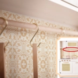 • Realistični detajli: kovinsko zlata pipa, obešalna letvica s kljukicami, ratan učinek na vratcih pečice.