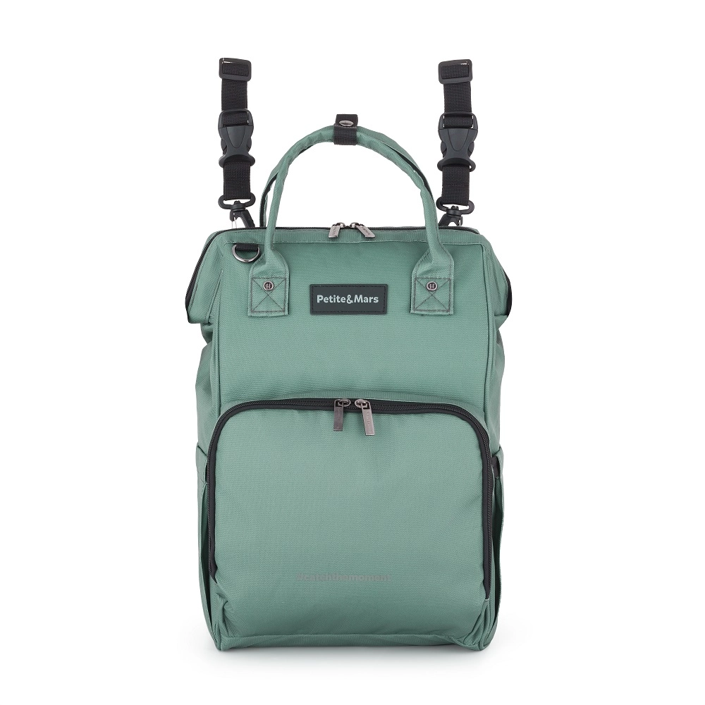 Iščete lahek in vzdržljiv nahrbtnik, ki bo ohranjal vse otroške in starševske potrebščine v popolnem redu? Petite&Mars Jack Misty Green je zasnovan tako, da se prilagodi vašemu tempu. Zahvaljujoč dvosmerni zadrgi in širokemu vhodu imate takojšen pregled nad vsebino, medtem ko svetla podloga olajša iskanje drobnarij.
