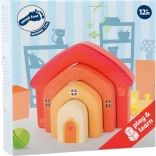 Ta motorična igrača v obliki hišice je sestavljena iz štirih lokastih delov, ki jih je mogoče vstavljati drugega v drugega ali zlagati enega na drugega. Preprosta zasnova, mehko zaobljeni robovi in topli leseni odtenki naredijo to igračo za stilski dodatek otroške sobe in odlično orodje za razvoj veščin.