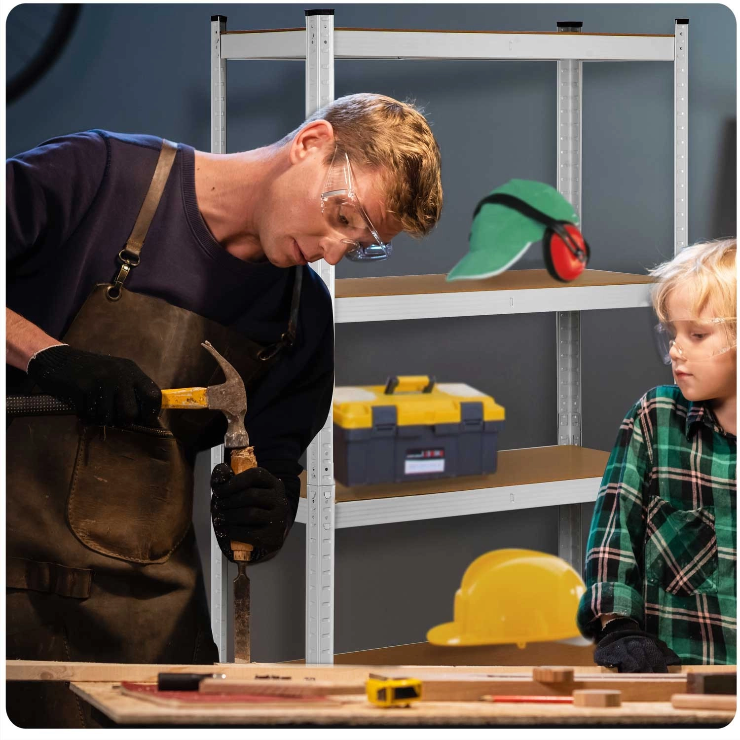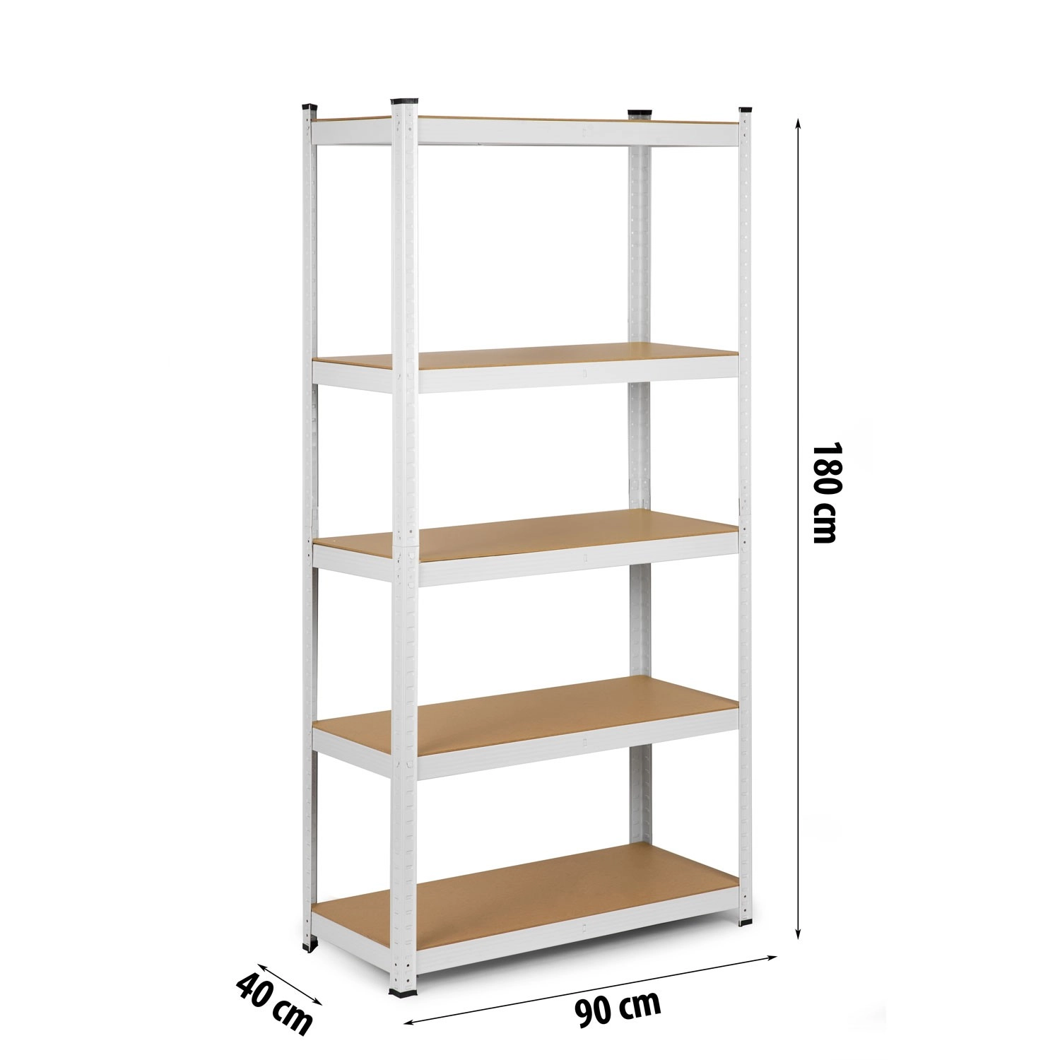 Univerzalno kovinsko stojalo HUMBerg v beli barvi ponuja 5 nastavljivih polic iz MDF, nosilnost do 875 kg in sistem montaže brez vijakov za hitro sestavljanje. Zaradi možnosti razdelitve na dve manjši stojali ali uporabe kot delovna miza je idealno za garažo, klet, arhiv ali delavnico. Zaščitne plastične kapice nog ščitijo tla, zaobljeni robovi pa povečujejo varnost.