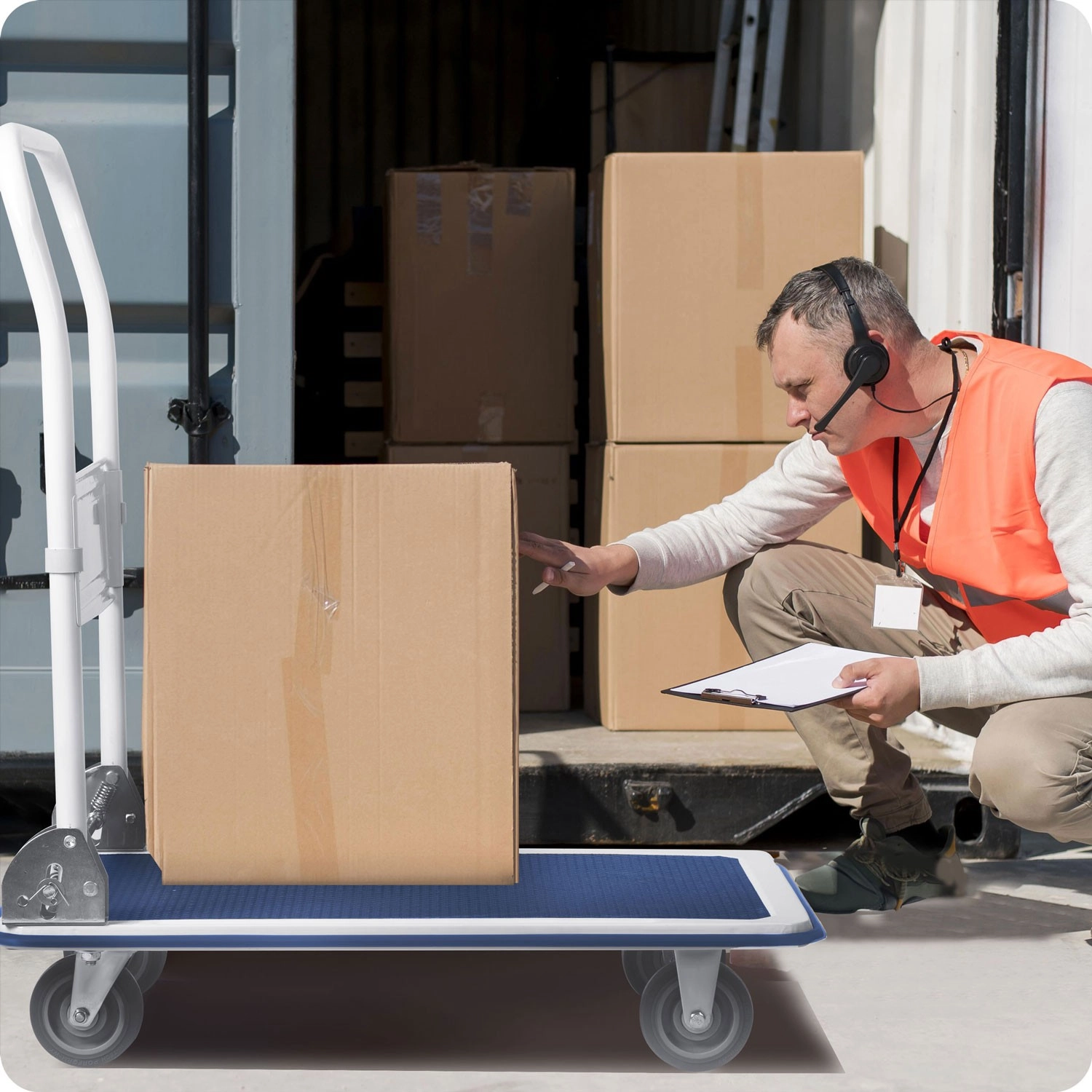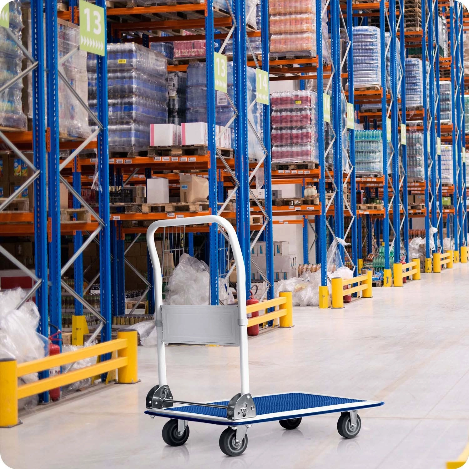 Močna jeklena konstrukcija in enakomerno porazdeljena obremenitev omogočata varno prevažanje do 300 kg. Idealno za skladišča, trgovine in selitve.