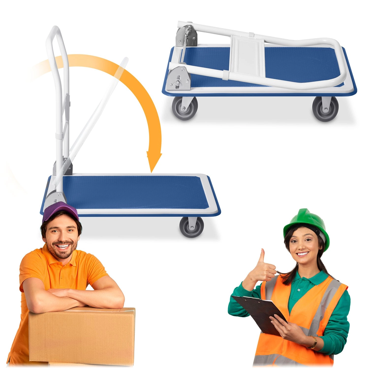 Zložljiv transportni voziček s platformo 300 kg Humberg HM-506, belo-moder