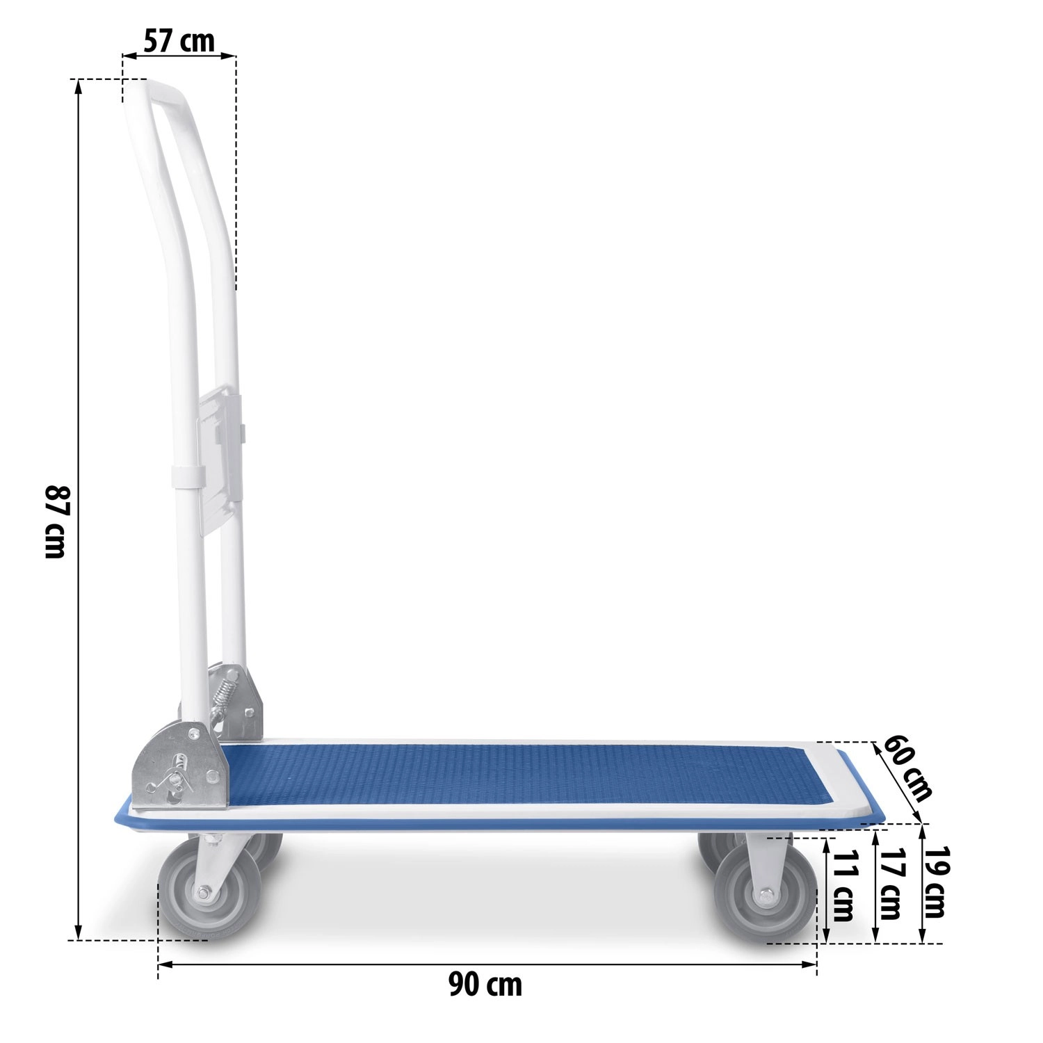 Zaradi nosilnosti do 300 kg (pri enakomerni porazdelitvi) zlahka prevažate škatle, naprave ali zaloge. Zložljiv ročaj s profiliranim oprijemom prihrani prostor pri shranjevanju, voziček pa se zaradi nizke teže enostavno prenaša. Gumirani rob platforme dodatno ščiti tovor in okolico pred praskami.