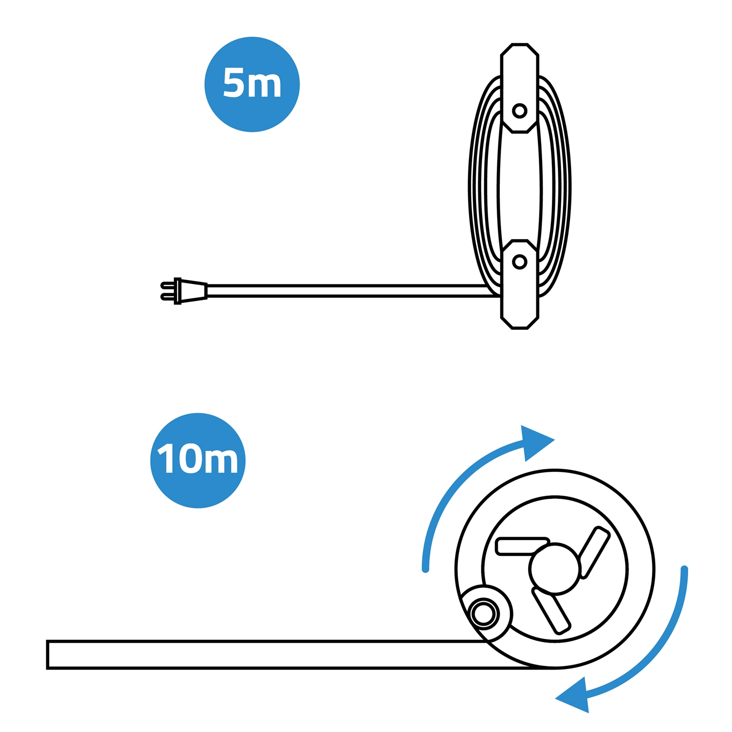 - Udobje: dolga 6 m cev, hitre spojke, nastavitev tlaka na šobi