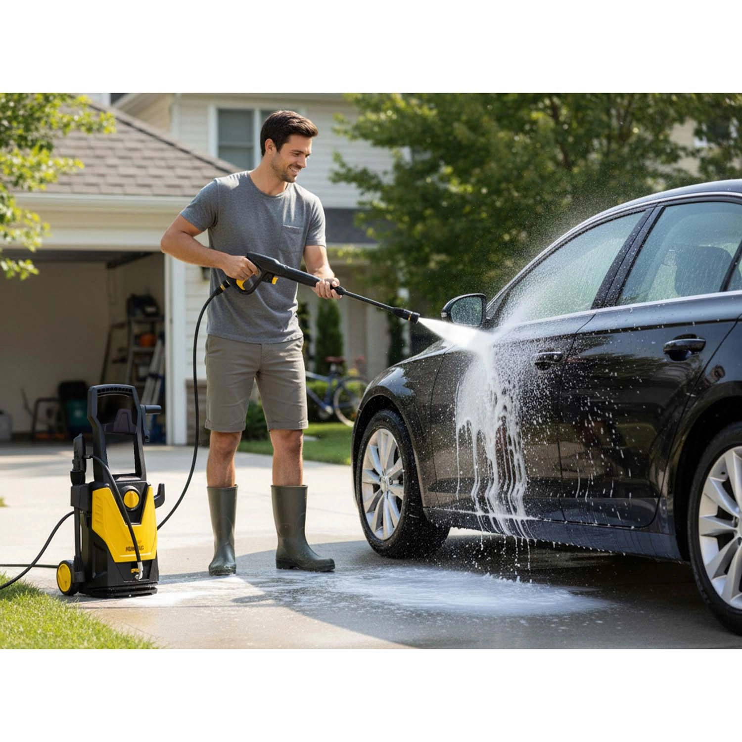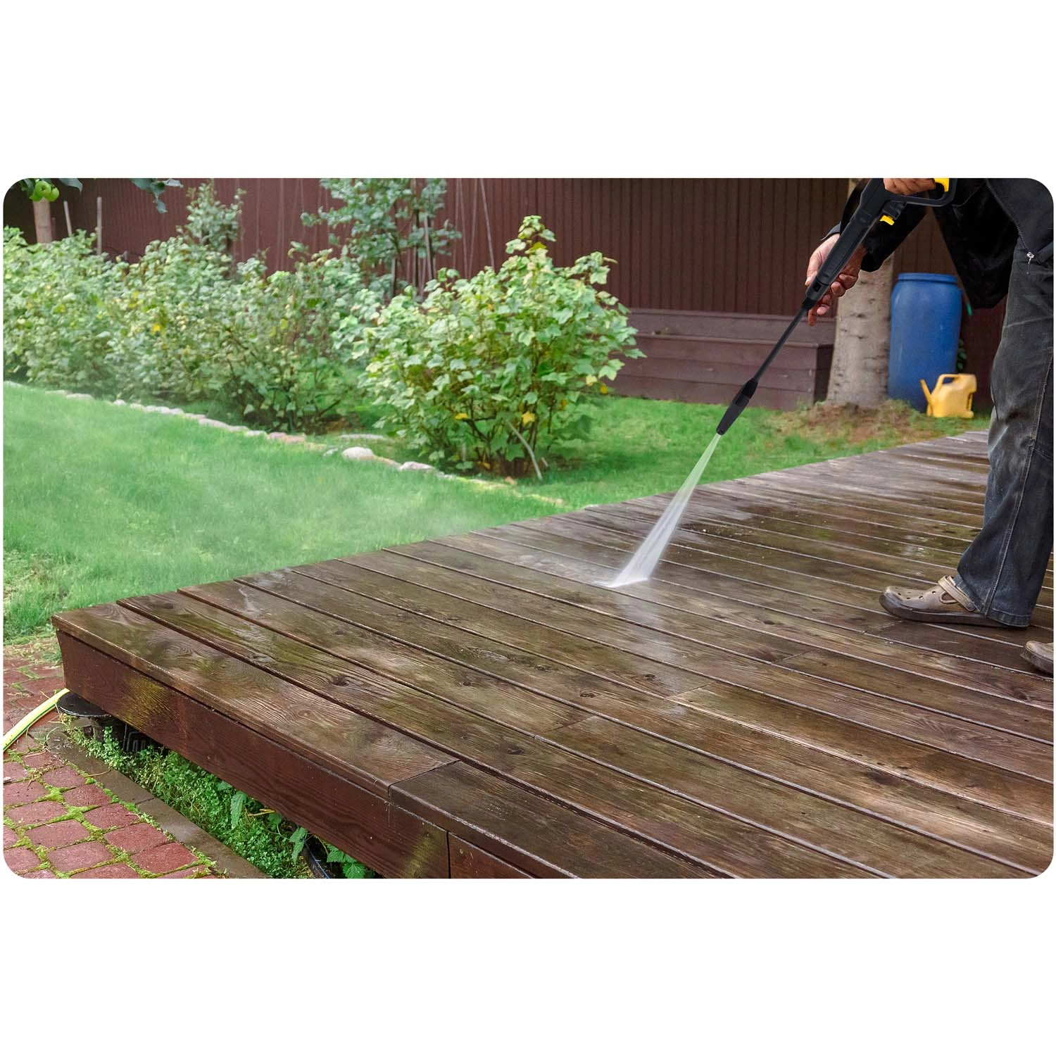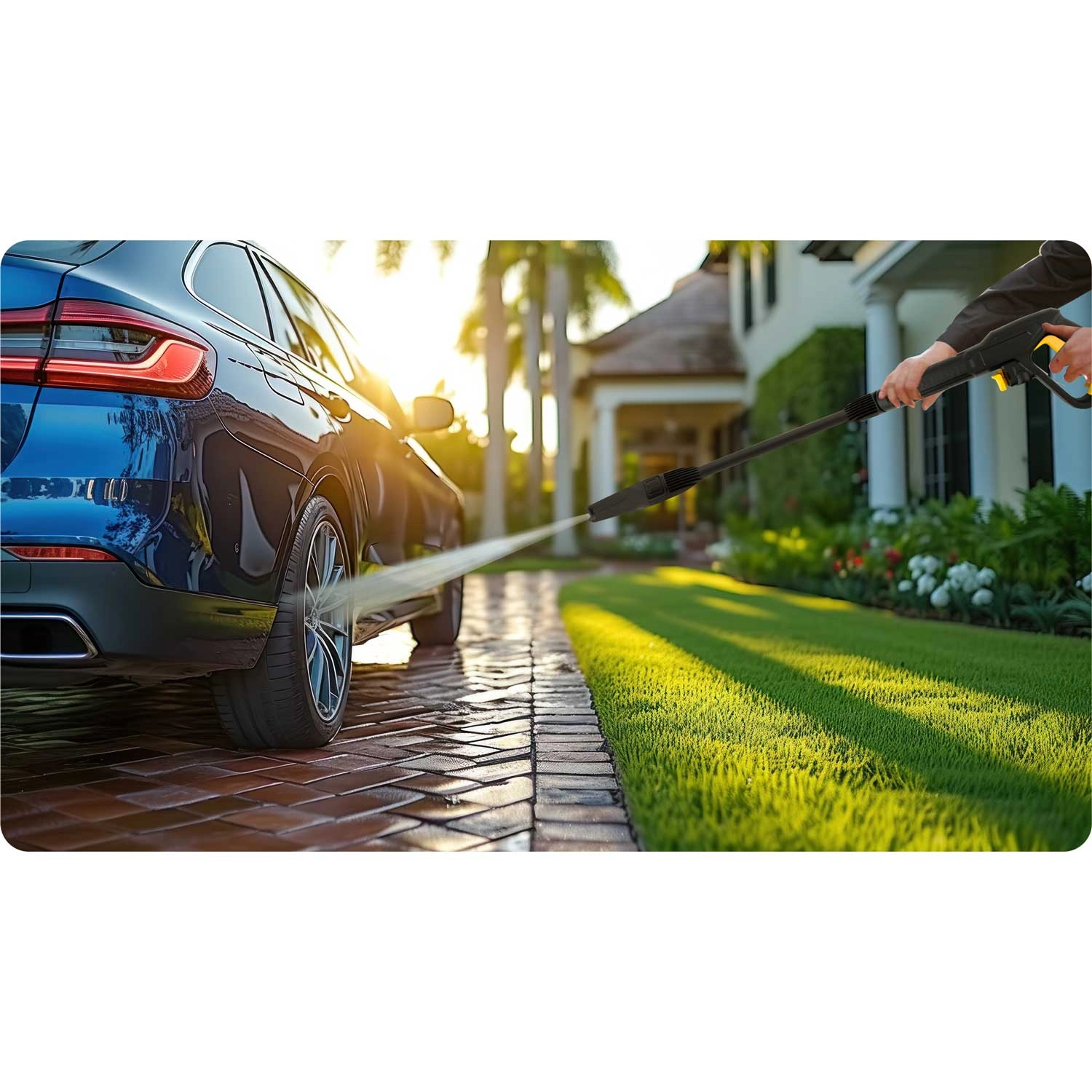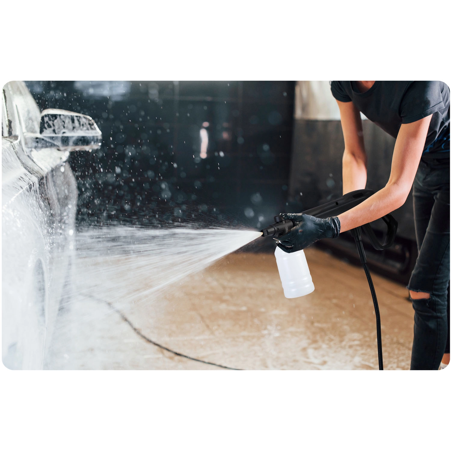 Varen in varčen sistem StopAndSafe™ samodejno izklopi tlak po sprostitvi sprožilca, prihrani energijo in vodo ter ščiti motor in črpalko pred nepotrebno obrabo. Praktična zasnova z nosilci za dodatke, 6 m cevjo in 5 m kablom zagotavlja udoben doseg in enostavno rokovanje.