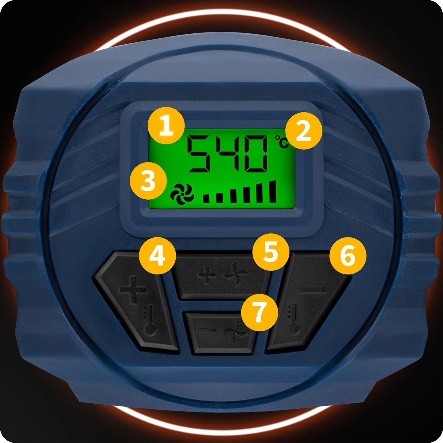 Nastavljajte temperaturo v korakih po 60 °C in spremljajte stanje na preglednem LCD-ju – rdeča signalizira segrevanje, zelena pripravljenost za delo. Idealno za občutljive in zahtevne aplikacije.