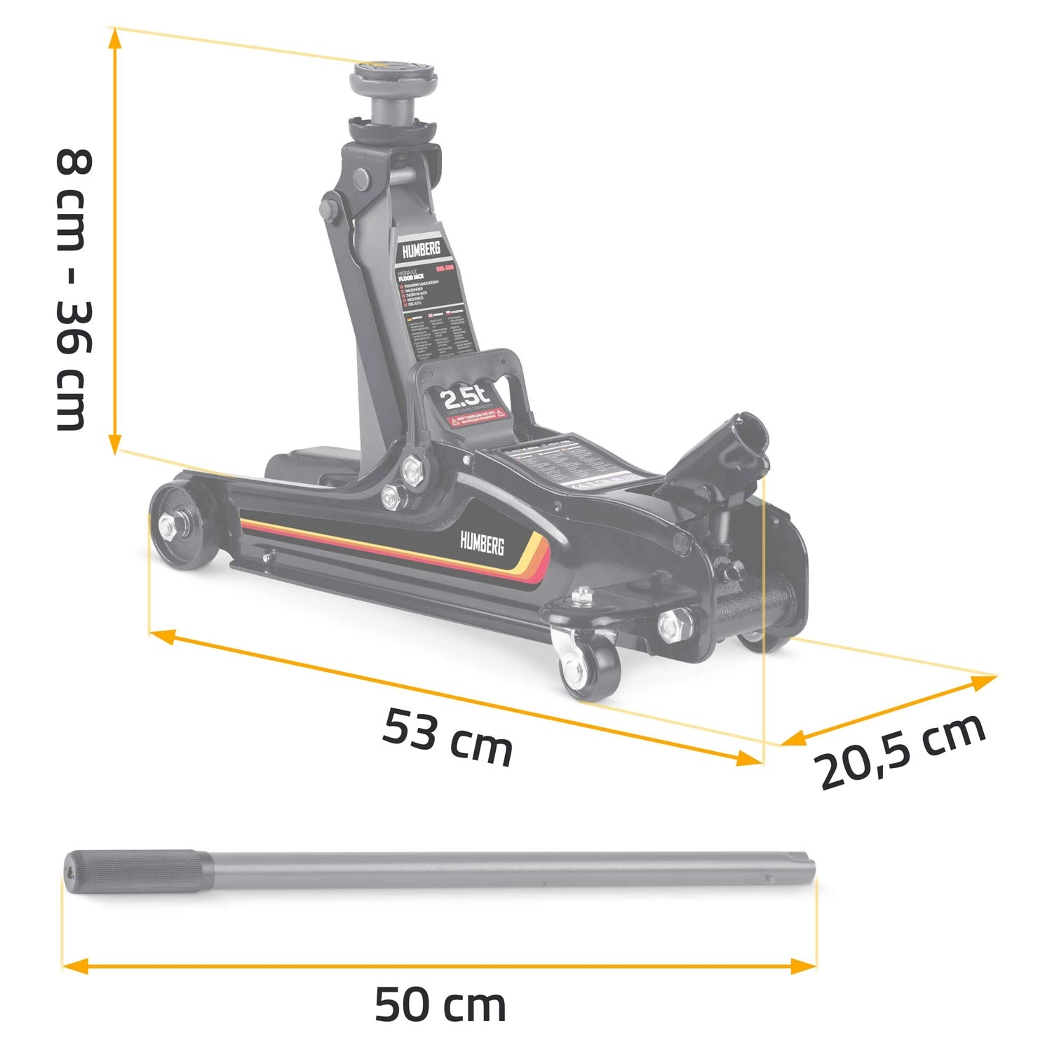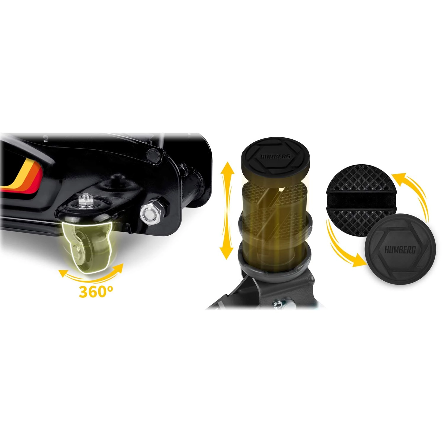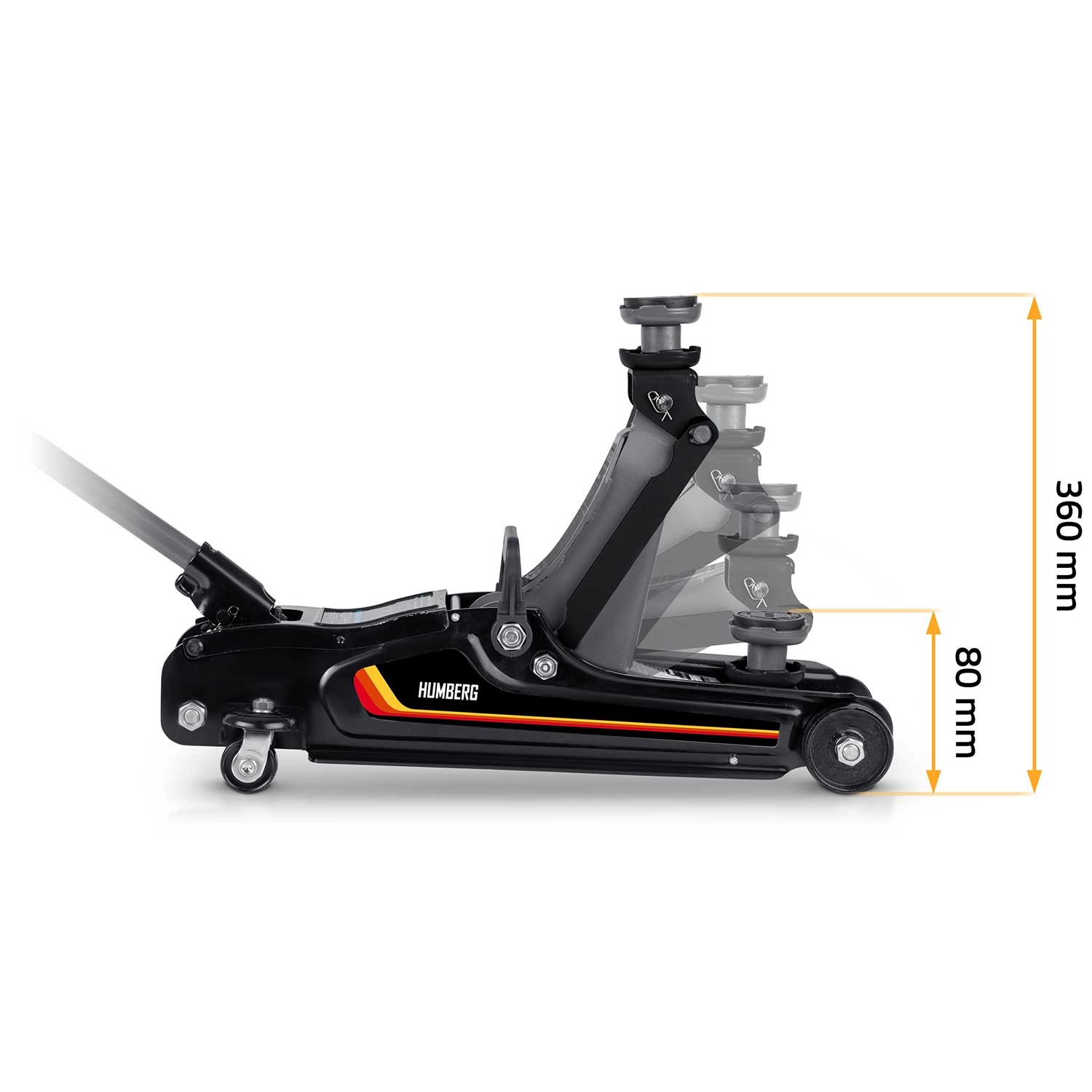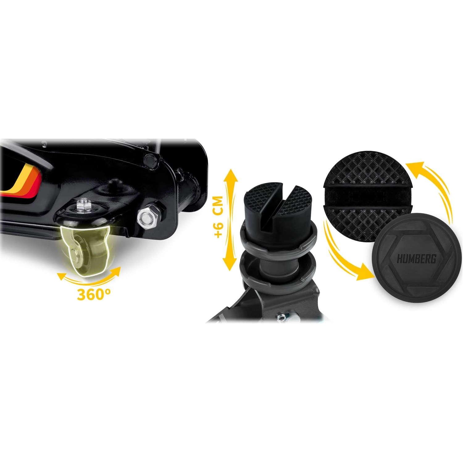 Nizkoprofilna dvigalka HUMBERG 2,5 t je idealna izbira za hitro in varno dvigovanje osebnih vozil, multivanov in manjših dostavnikov do mase 2 500 kg. Nizek profil z dvigom 80–360 mm omogoča delo tudi pri športno nižjih avtomobilih. Enobatna hidravlična enota zagotavlja tekoče in učinkovito dvigovanje, medtem ko varnostni nadtlakni ventil ščiti pred preobremenitvijo.