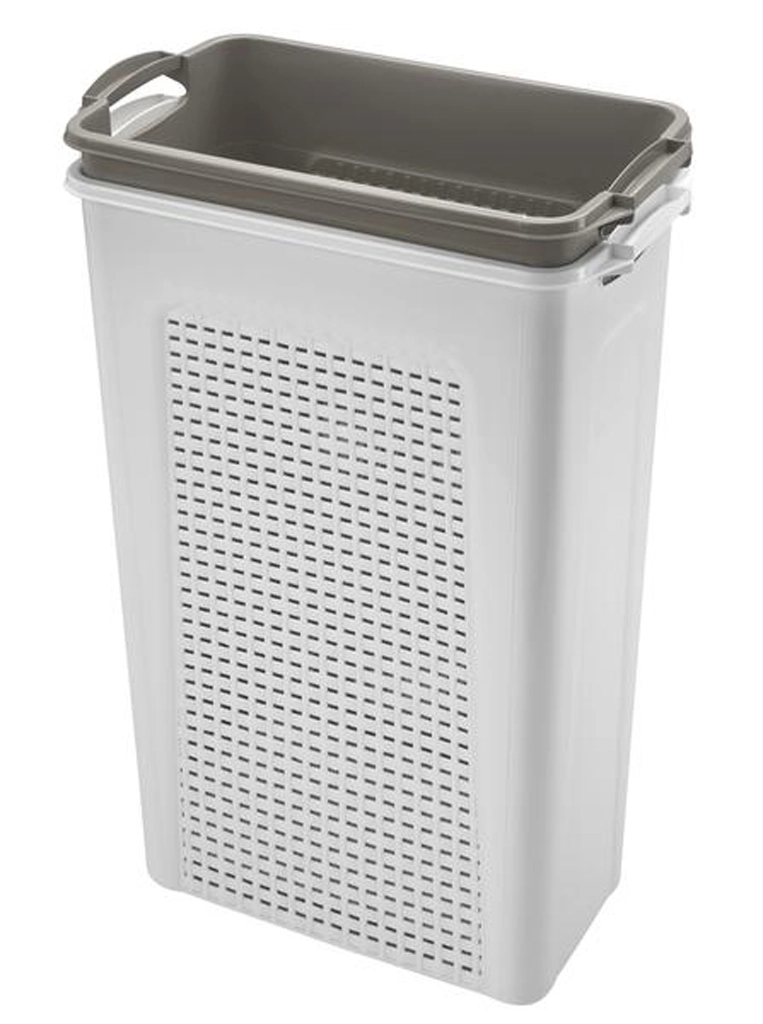 Ohranite dom urejen in stilski. Set dveh košev za umazano perilo z velikodušno prostornino 2×45 l olajša ločevanje svetlega in temnega perila, prihrani čas in prostor ter se odlično poda v sodoben dom. Zaradi kompaktne širine je idealen za ozke prostore, predsobe in kopalnice.