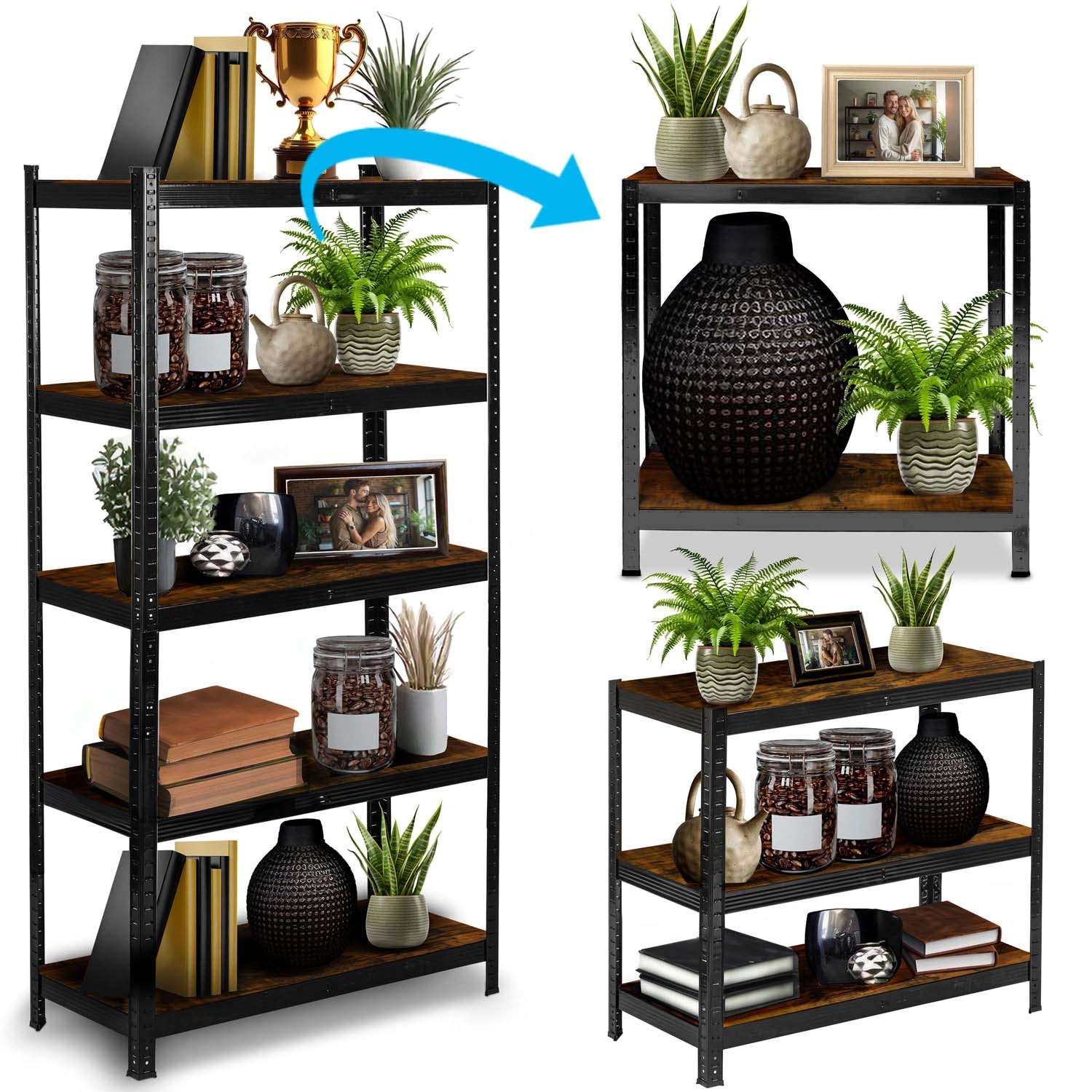 Univerzalni kovinski regal Humberg z merami 180 × 90 × 40 cm ponuja 5 trdnih MDF polic z nosilnostjo 175 kg na polico in skupno nosilnostjo do 875 kg. Zahvaljujoč vijačenju brez vijakov s klik sistemom, nastavljivi višini polic in možnosti razdelitve na dva manjša regala ali delovno mizo je idealen za garažo, klet, delavnico, skladišče in pisarno. Zaobljeni robovi in zaščitne kapice zagotavljajo varnost in stabilnost brez prask na tleh.