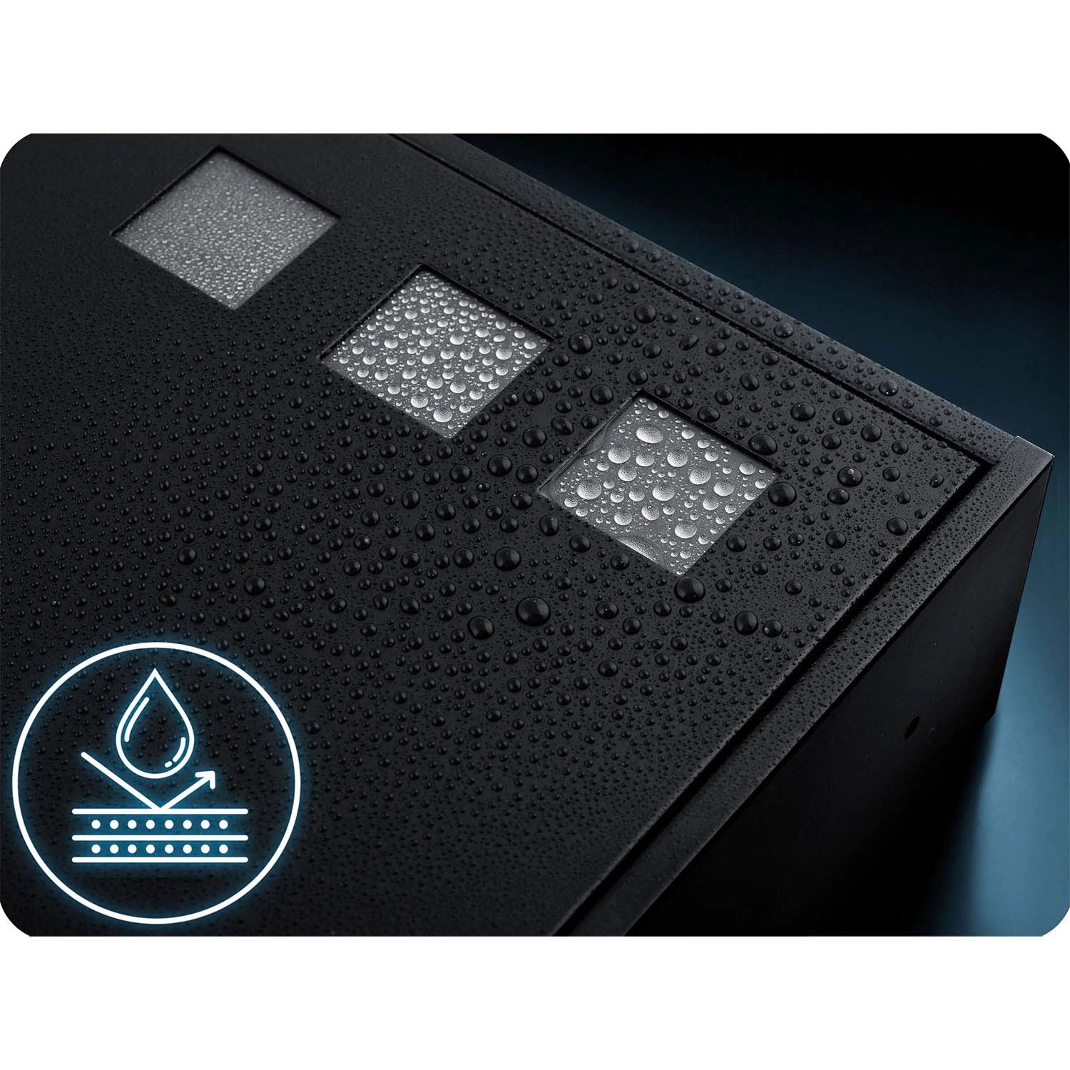 Konstrukcija iz pocinkanega jekla in kakovosten prašni lak v črni barvi ščitita nabiralnik pred korozijo, UV-žarki in vlago – idealno za zunanjo uporabo skozi vse leto.