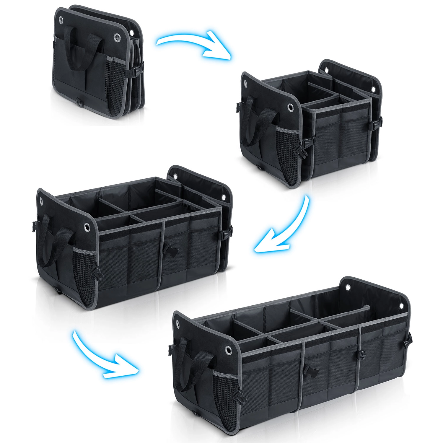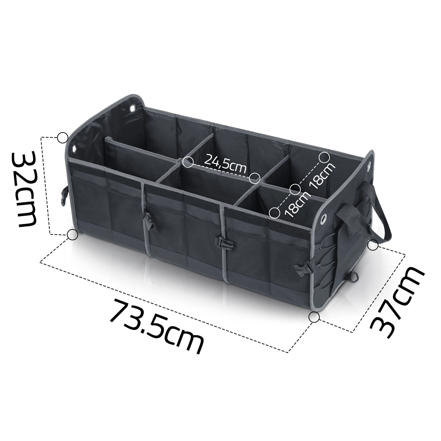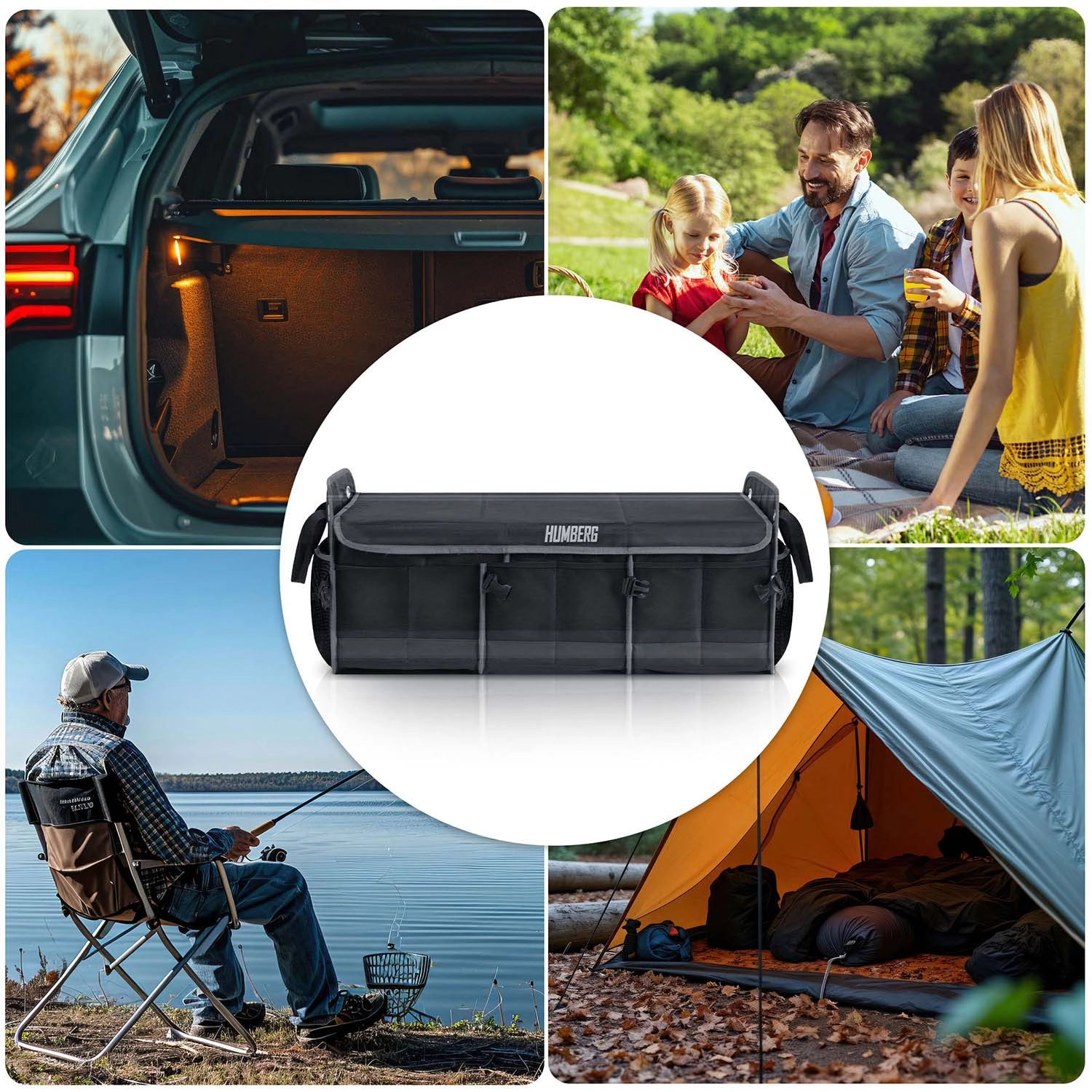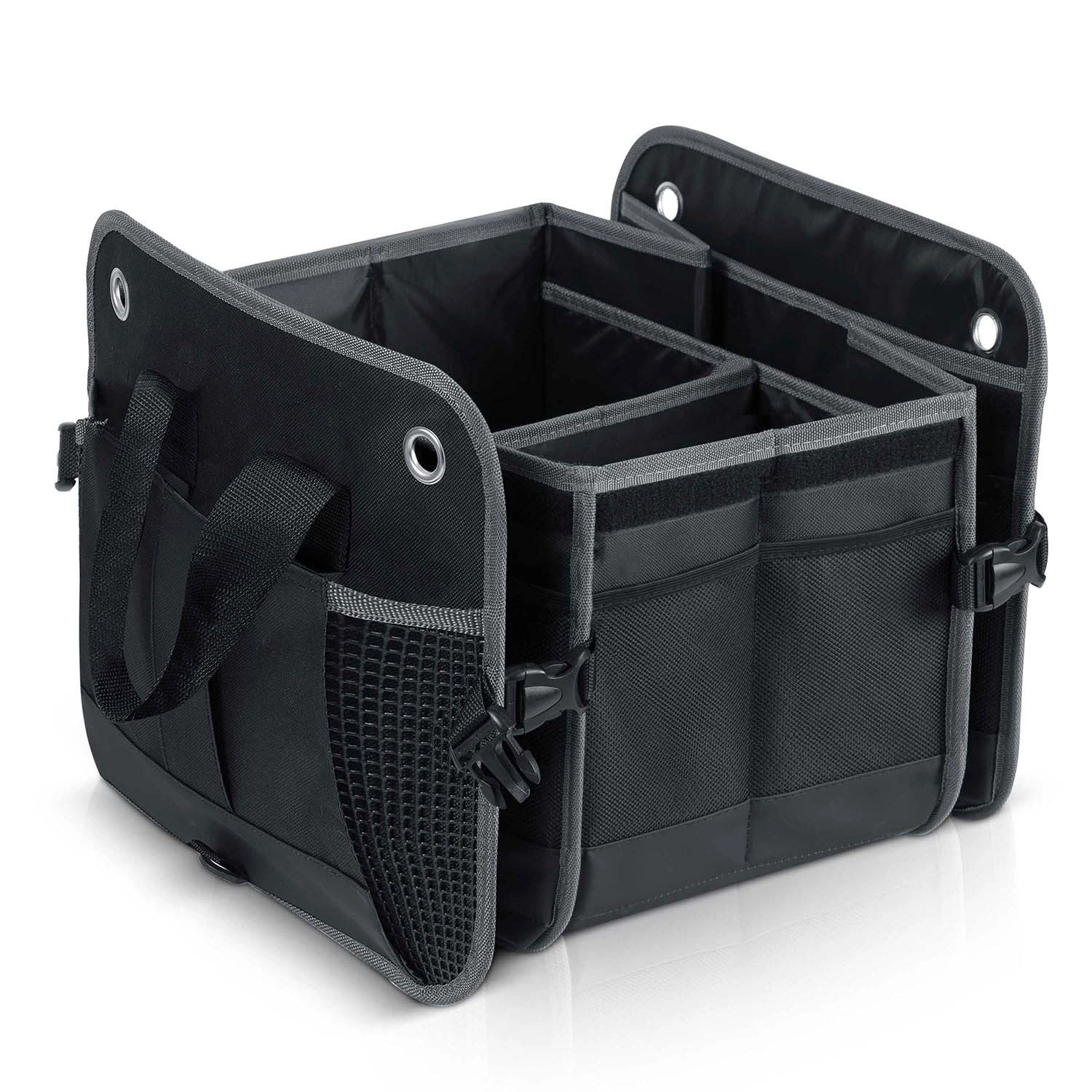 Spremenite kaos v preglednost. Organizator prtljažnega prostora HUMBERG je zasnovan za voznike, kurirje in družine – nakupe, orodje, kable in prvo pomoč hrani varno shranjene in lahko dostopne. Zložljiva zasnova omogoča uporabo od ene do več komor, čvrste stene držijo obliko, odstranljiv pokrov pa ščiti vsebino pred prahom in radovednimi pogledi.