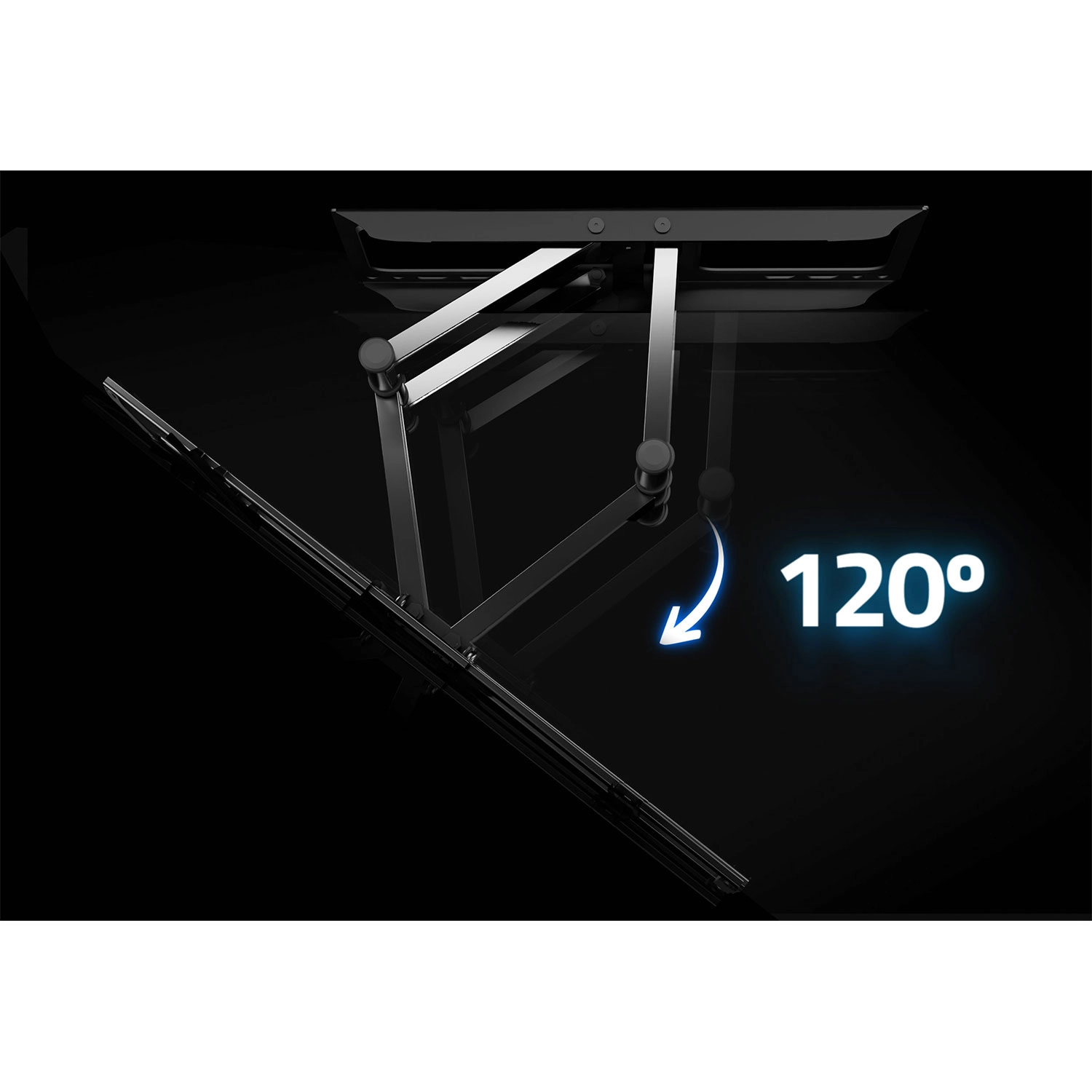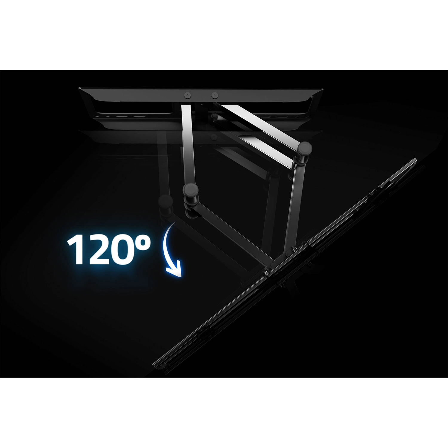 Ergonomske nastavitve poskrbijo za udobno gledanje z vsakega mesta: zasuk do 120°, naklon od -5° do 8° za zmanjšanje bleščanja in korekcija ±3° za popolno poravnavo po montaži. Konstrukcija iz praškasto lakiranega jekla je odporna na poškodbe in korozijo ter zagotavlja dolgo življenjsko dobo.