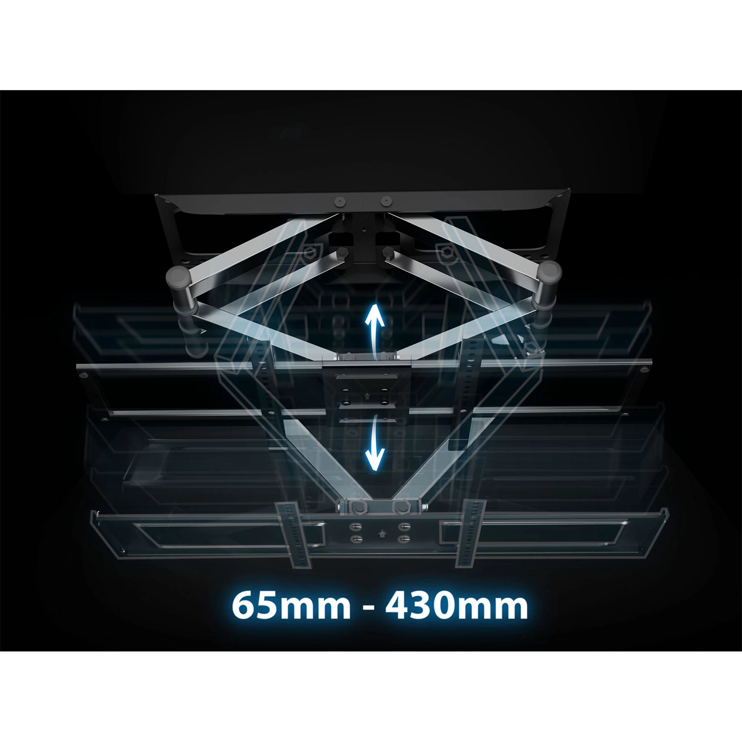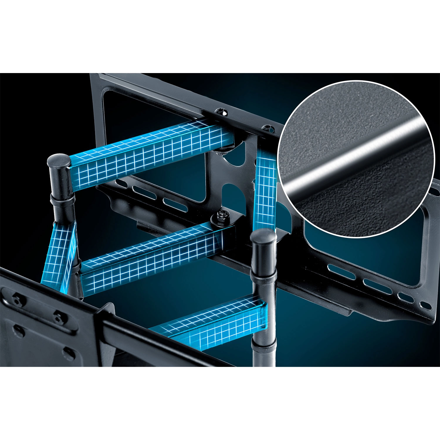 Iščete zanesljiv nosilec za velik in težak televizor? Jekleni nosilec HUMBERG z nosilnostjo 70 kg zagotavlja stabilnost in varnost tudi za večje modele. Zahvaljujoč tekočemu pomiku 6,5–43 cm od stene boste zlahka prilagodili postavitev televizorja prostoru in dosegli čist videz brez kompromisov.