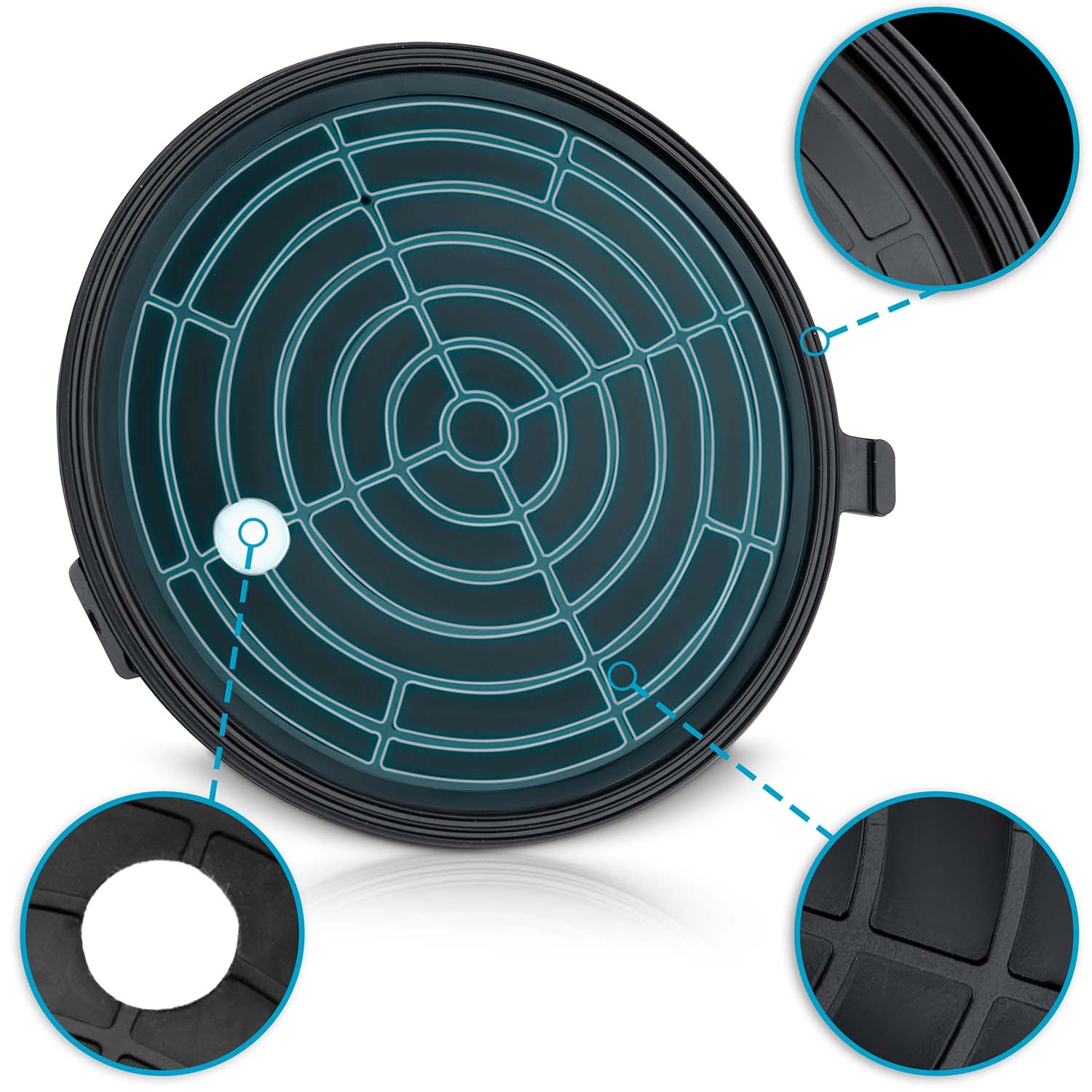 Jasen manometer z barvno lestvico omogoča takojšen pregled ravni podtlaka: 0–300 mmHg (neustrezno) in 300–760 mmHg (optimalno, varen oprijem).