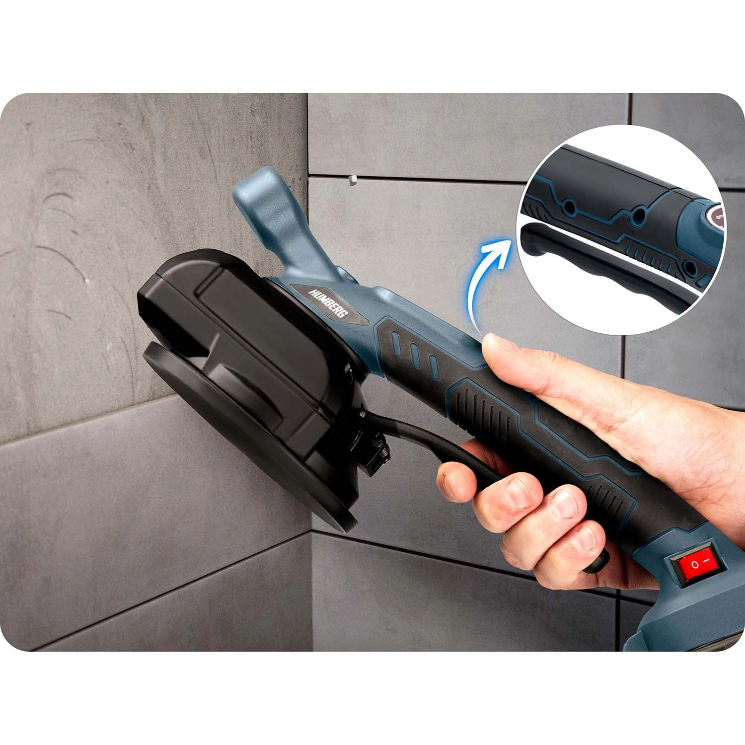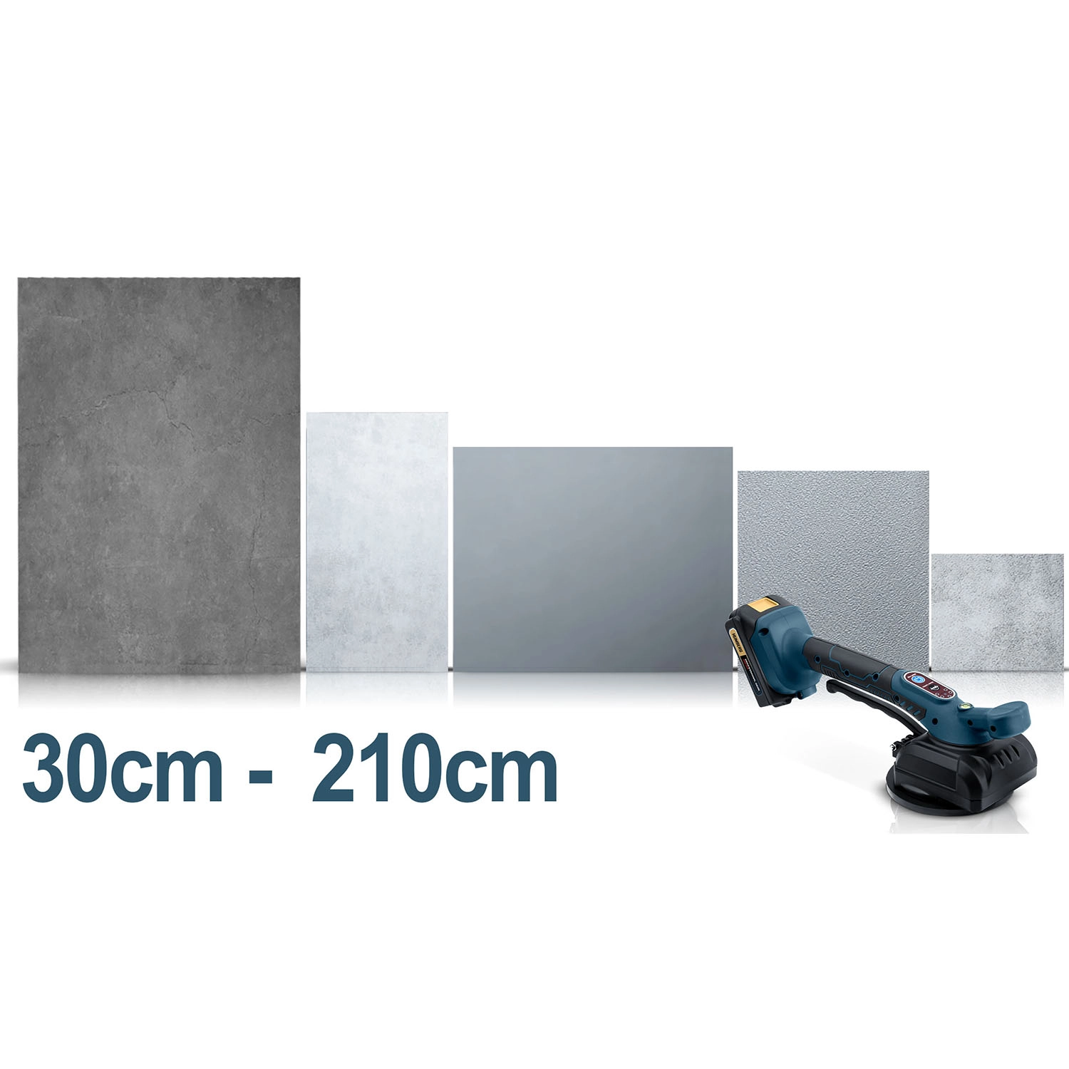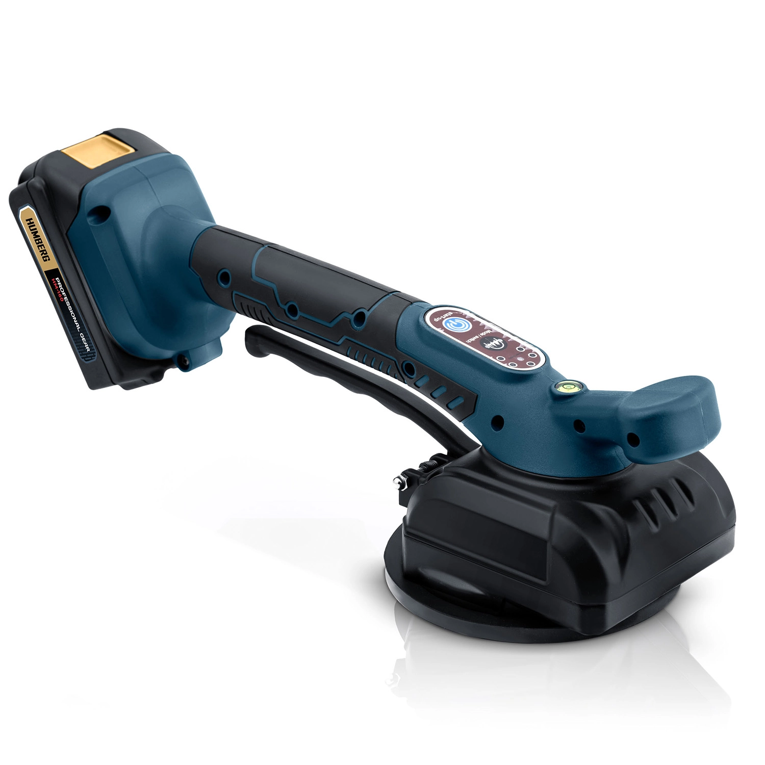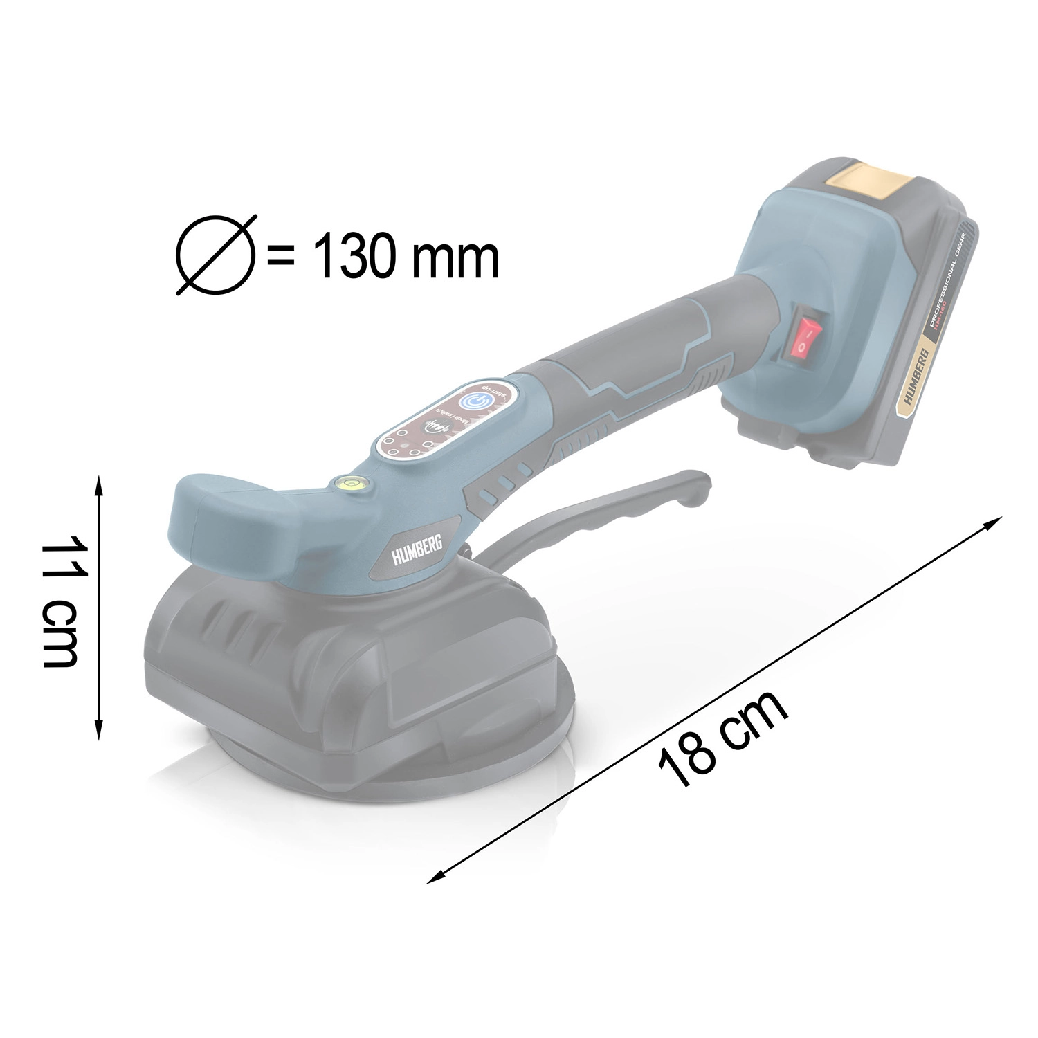 Profesionalna električna vibracijska prisesalka za ploščice HUMBERG z nosilnostjo do 100 kg pospeši montažo in prenos tako velikih formatov kot standardnih oblog. Ponuja 5 stopenj vibracij za natančno namestitev, dolgo avtonomijo do 240 minut z dvema akumulatorjema in hitro polnjenje 4–5 h. Zahvaljujoč močnemu podtlaku, vgrajeni libeli in naprednim varnostnim zaščitam boste delali hitreje, natančneje in brez tveganja poškodbe materiala.