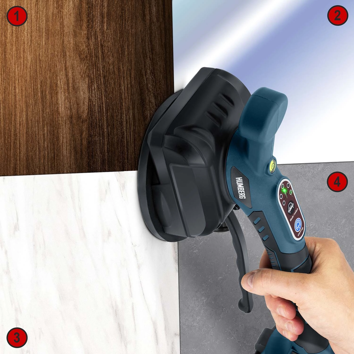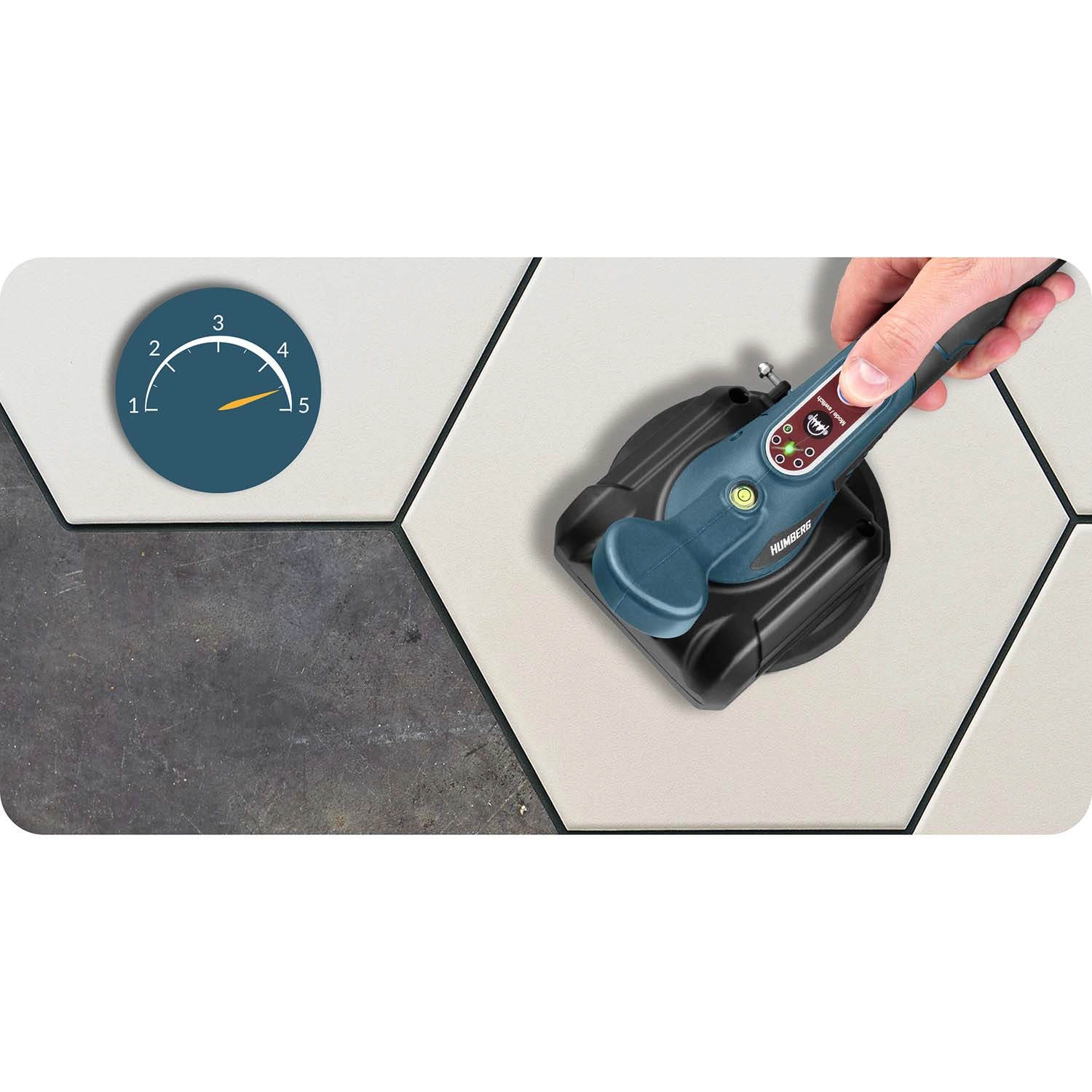 Vibracijska vakuumska prisesalka HUMBERG združuje visoko oprijemljivost s pametno vibracijsko tehnologijo za popolno namestitev oblog. Vibracije pomagajo enakomerno porazdeliti lepilo, iztisniti zračne mehurčke in doseči natančno ravnino brez nepotrebnega ročnega dotiskanja. Rezultat je hitrejše delo in kakovostnejša površina brez poznejšega odstopanja.