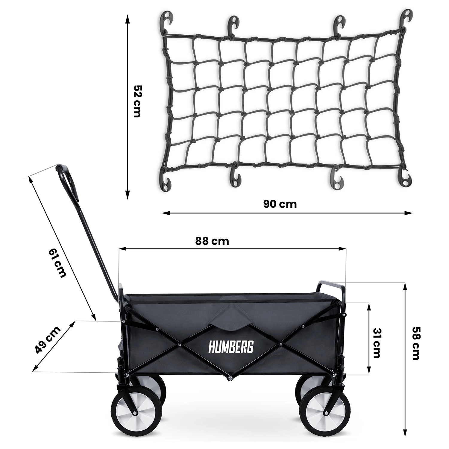 Iščete trpežen in hkrati kompaktno zložljiv voziček za vrt, plažo ali izlete? Zložljiv voziček HUMBERG ponuja prostoren koš s prostornino 80 l, prašno lakiran jekleni okvir in sprednja vrtljiva kolesa za natančno krmiljenje. Zaradi nizke teže in kompaktnih mer po zlaganju ga zlahka pospravite v avto ali garažo.