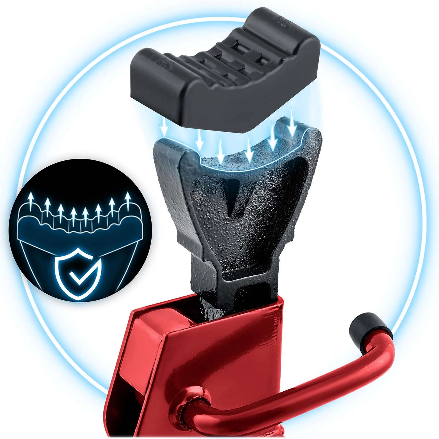 Gumijasta sedla ščitijo nosilne točke vozila pred praskami in povečajo oprijem. Primerno za redno servisiranje brez tveganja poškodb podvozja.