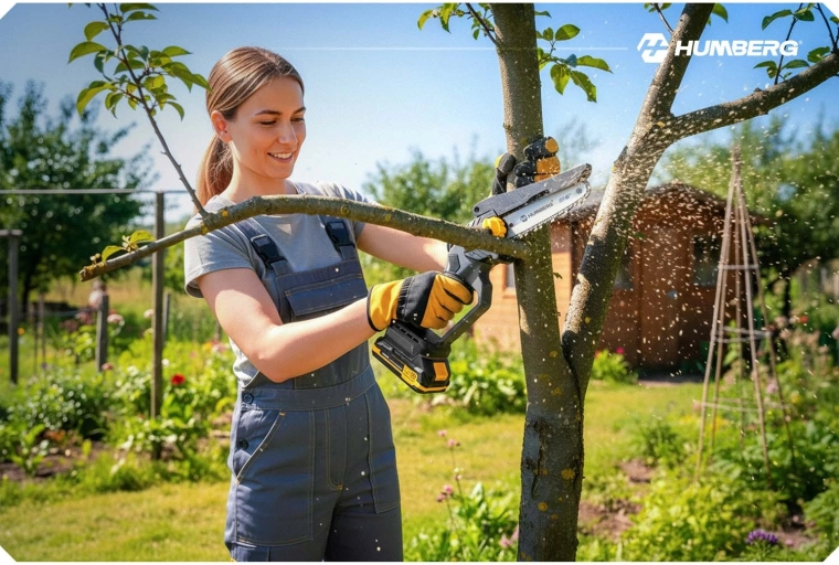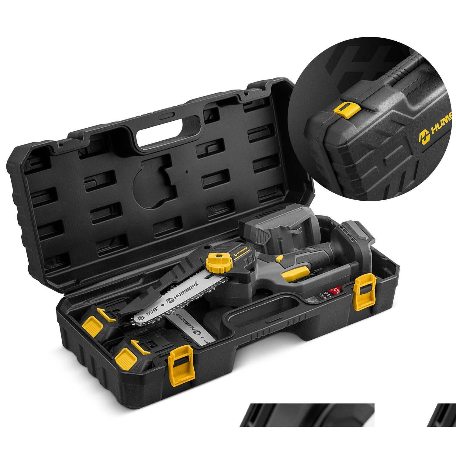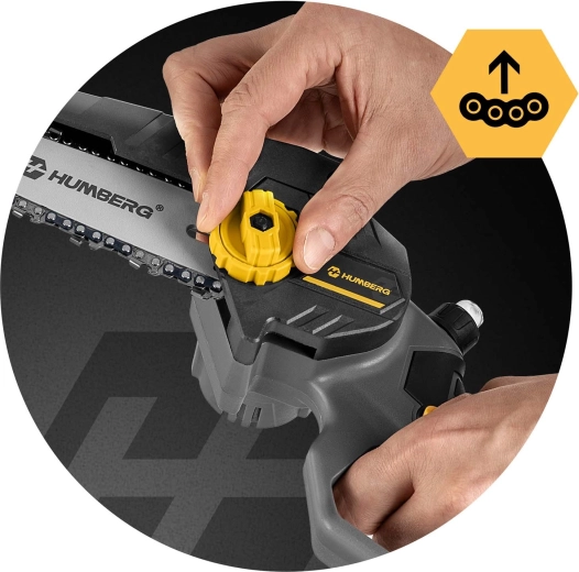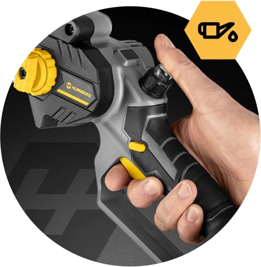 Akumulatorska mini žaga Humberg združuje brezkrtačni motor z do 21.000 vrt./min za stabilno zmogljivost brez zatikov. Zahvaljujoč samodejnemu oljenju in zaščitnemu pokrovu verige reže hitro in varno. Brezključno napenjanje z bočnim koleščkom skrajša pripravo – preprosto zavrtite in žagate.