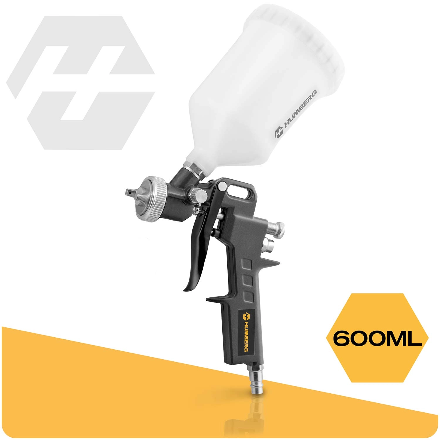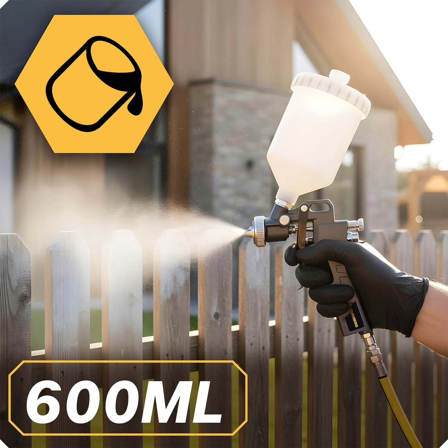 • Lakirno pištolo 600 ml z regulacijo pretoka in razpršila za enakomeren nanos brez kapljanja.
