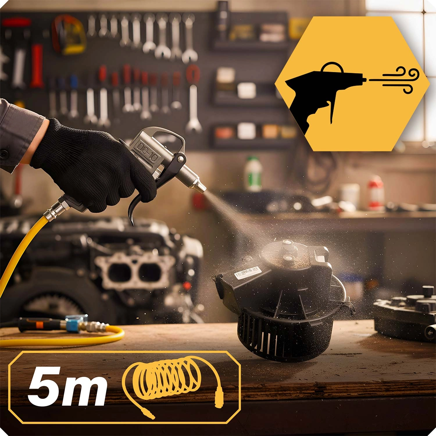 Univerzalni komplet pnevmatskega orodja 18 v 1 za domačo delavnico in garažo vam omogoča vse od natančnega polnjenja koles, temeljitega čiščenja s stisnjenim zrakom do lakiranja in nanosa zaščitnih premazov. Zahvaljujoč standardnim hitrim spojkam 1/4" ustreza večini kompresorjev ter zagotavlja hitre, udobne in profesionalne rezultate.