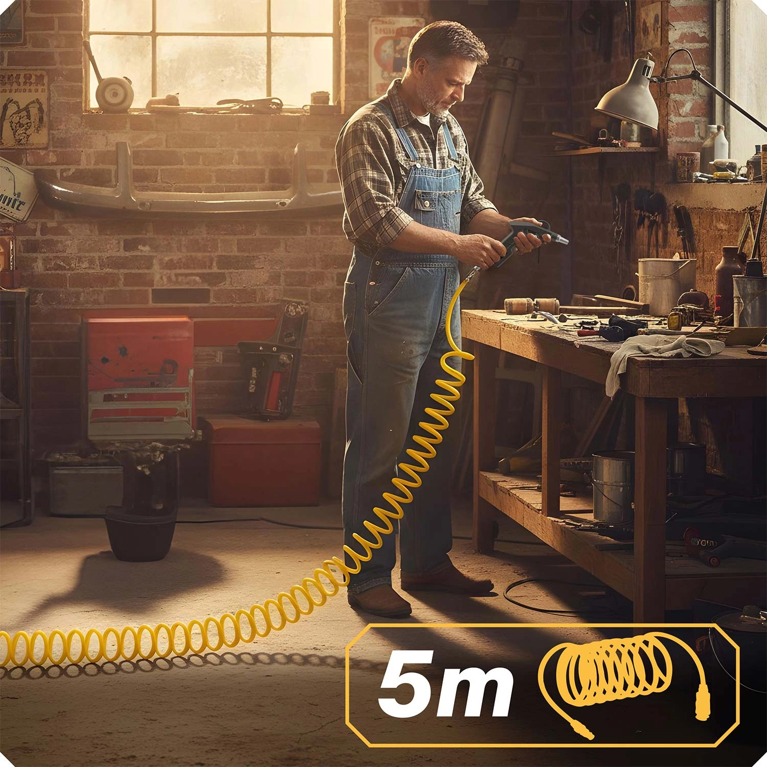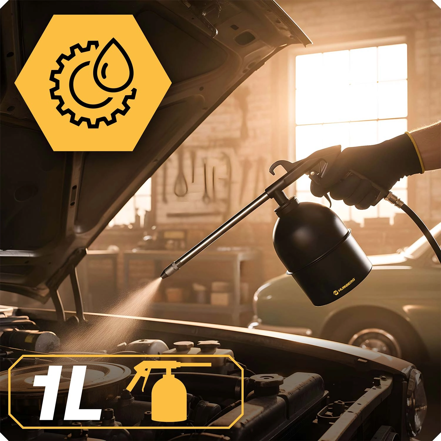 Za zahtevnejše medije je namenjena konzervacijska/aplikacijska pištola s posodo 1 l – popolna za zaščitna sredstva podvozja, maziva in protikorozijske mešanice. Spiralna cev 5 m je lahka, prožna in odporna proti zalomu, zato zagotavlja udoben doseg in enostavno manevriranje okoli delovnega mesta.