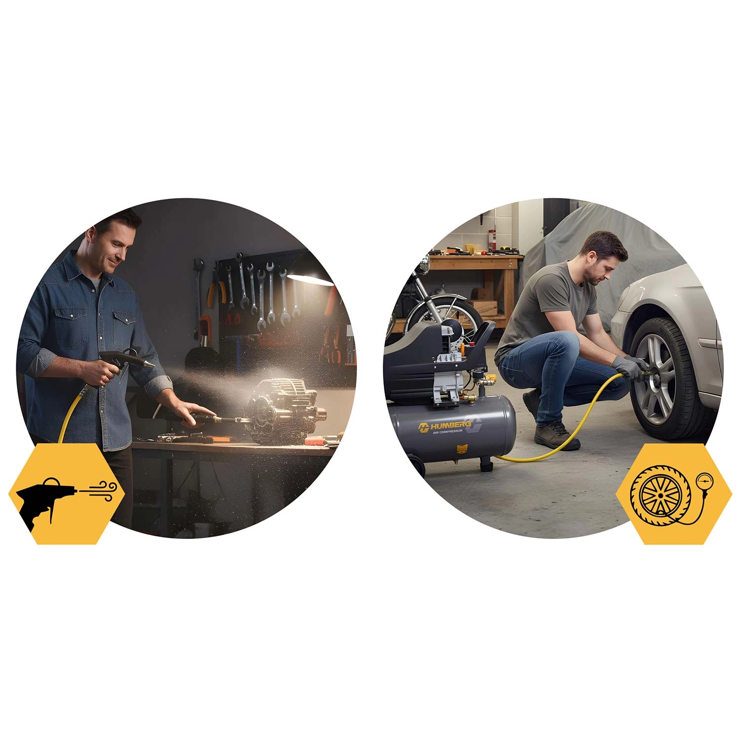 Univerzalni komplet pnevmatskega orodja 6 v 1 za kompresor HUMBERG omogoča udobno polnjenje pnevmatik, pihanje in čiščenje, tlačno pranje ter druga dela v delavnici ali garaži. Vključuje pištolo z manometrom, pihalno pištolo, spiralno cev 5 m, set nastavkov in hitrospojko za hitro priključitev. Prihranite čas in denar ter delajte kot v profesionalnem servisu.