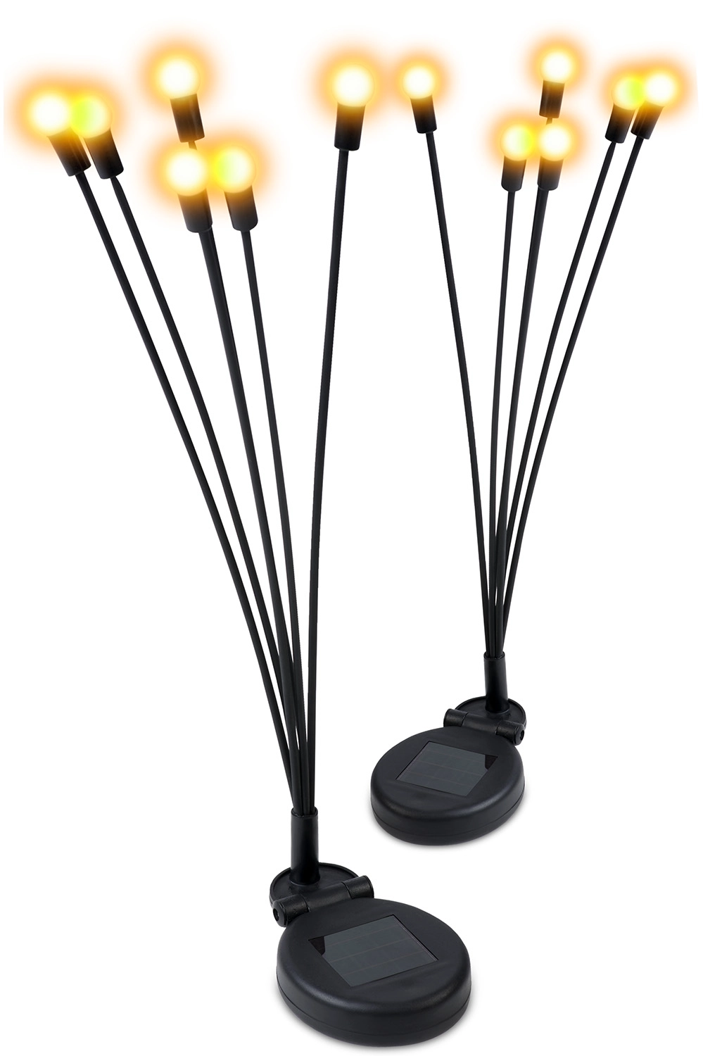 Več upogljivih stebel s toplimi LED kroglicami ustvari nežno iskrice med rastlinami in ob poteh – naravno, dekorativno in zelo učinkovito.