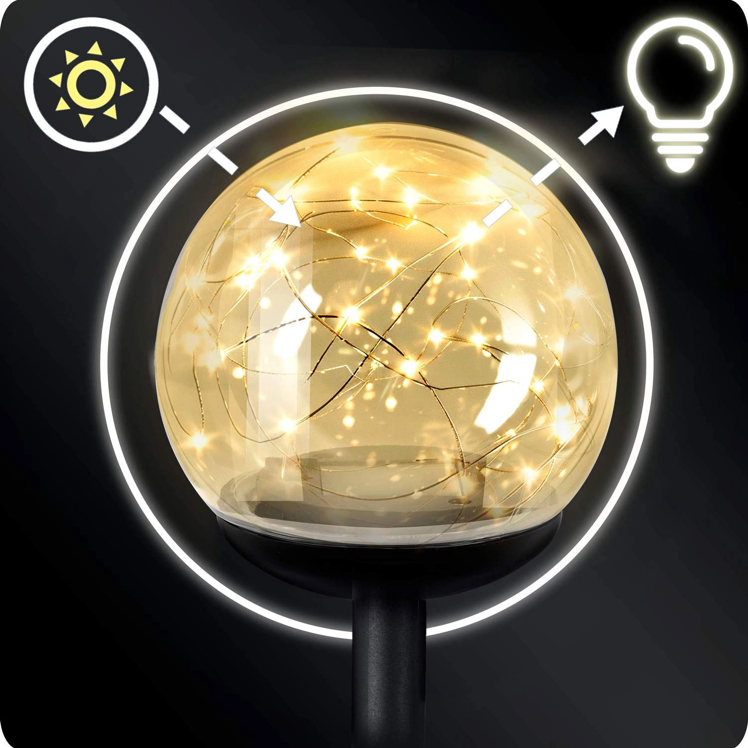 Solarne vrtne svetilke ILUMEN spremenijo vaš zunanji prostor v prijetno osvetljeno oazo. Prosojne krogle z nežnimi LED točkami enakomerno razpršijo toplo svetlobo ter varno poudarijo stezice, vhode in grede. Zahvaljujoč amorfnim solarnim panelom zanesljivo polnijo tudi pri slabši osvetlitvi, vgrajeni akumulator 150 mAh Ni-MH pa zagotavlja energijo za večerno svetenje.