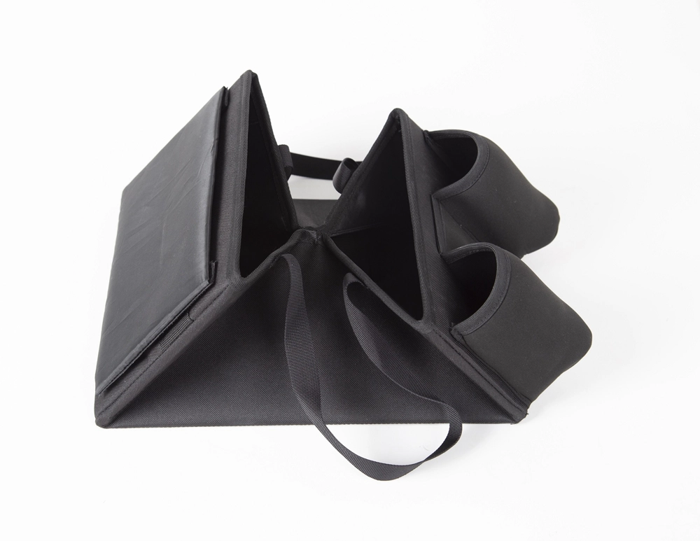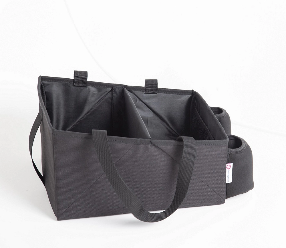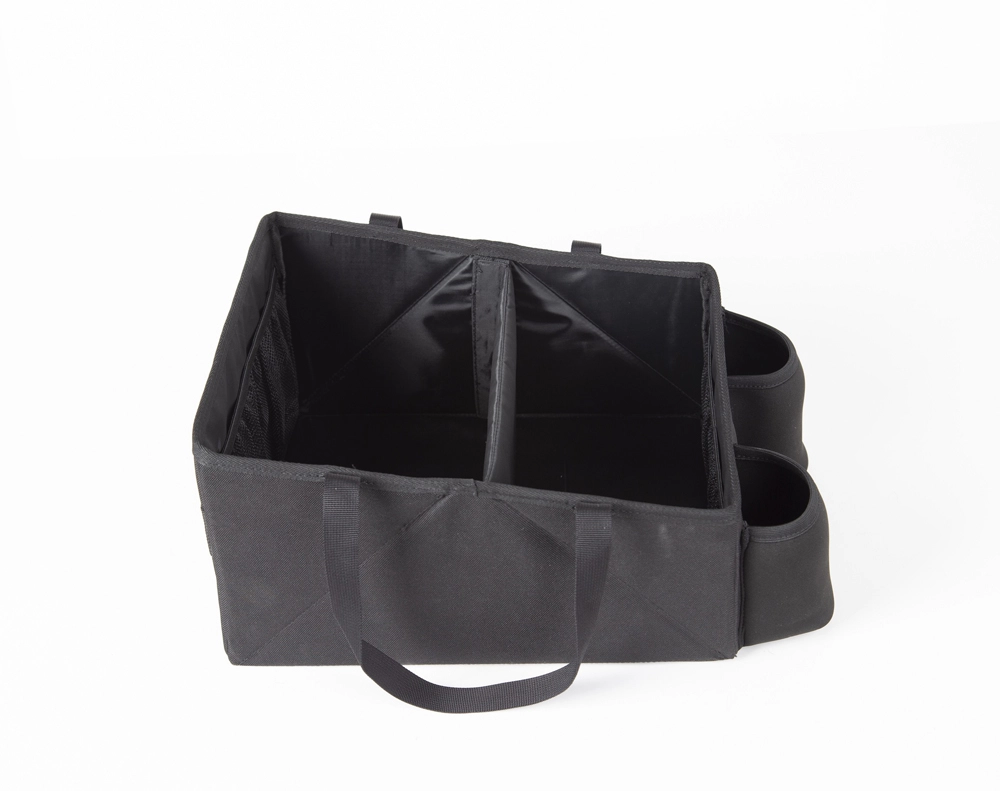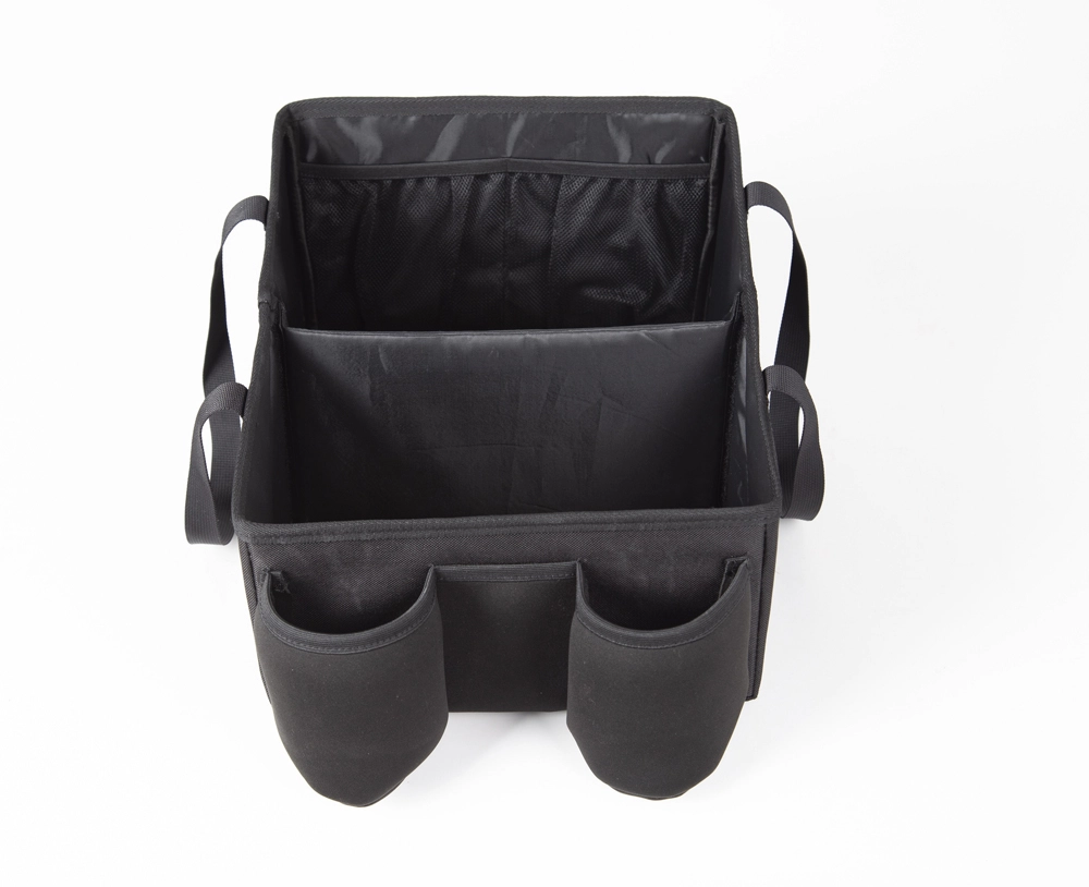 Enostavna pritrditev z varnostnim pasom na zadnjem sedežu ali med dvema otroškima sedežema. V prtljažniku ohranja obliko in drži stvari na mestu.