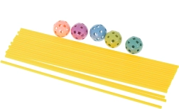 Odkrijte čar kreativne gradnje z našim čudovitim gradbenim kompletom, ki otrokom omogoča gradnjo različnih struktur, kot so šotori, baze ali celo pasje utice! Komplet vsebuje 75 delov, vključno s 51 rumenimi palicami in 24 raznobarvnimi povezovalnimi kroglicami, ki ponujajo neskončne možnosti gradnje.