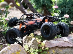 Priložen je oddajnik 2,4 GHz za stabilno in nemoteno upravljanje. Model napaja akumulator, upravljalnik potrebuje 4× AA 1,5 V. Mere 48 × 27 × 25 cm ponujajo idealno razmerje med okretnostjo in prehodnostjo terena.