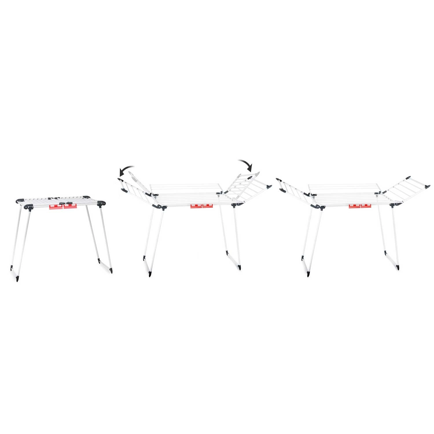 Razširite stojalo natančno po potrebi. Krila preprosto dvignete in pridobite dodaten prostor za srajce, brisače in občutljive tkanine.