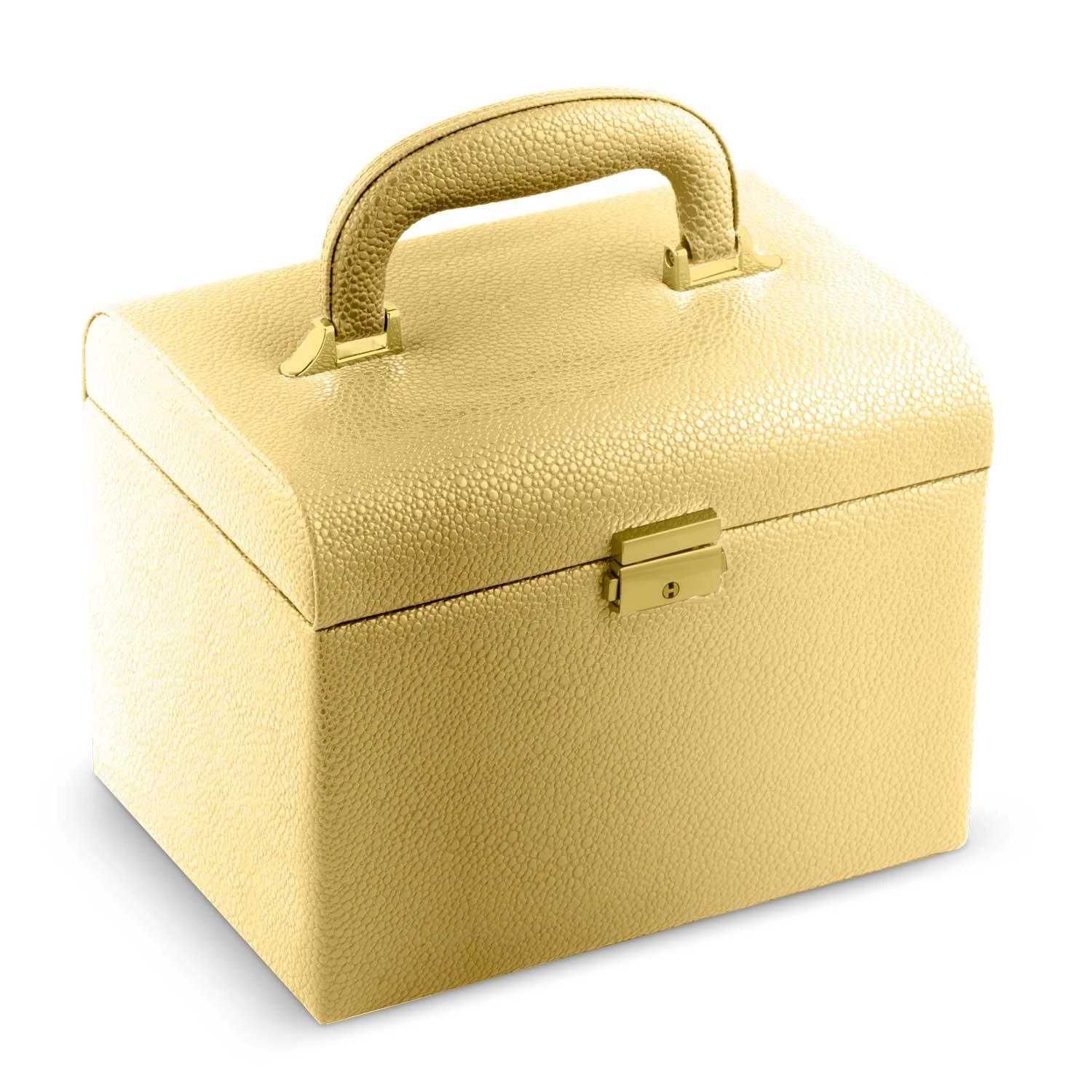 Zlati kozmetični kovček MASSIDO MS-706 združuje slog, vzdržljivost in vrhunsko praktičnost. Kompaktne mere 22,5 × 16,5 × 17,2 cm se udobno prilegajo toaletni mizici ali potovalni torbi, hkrati pa ponujajo presenetljivo veliko prostora za kozmetiko, nakit in dodatke. Integrirano ogledalce in urejena notranjost omogočata hitro ličenje in popoln red kjerkoli in kadarkoli.