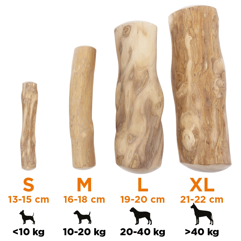 Žvečilna palčka iz kavovine je idealna izbira za pse, ki obožujejo dolgo in intenzivno žvečenje. Les kavovca je precej trši od običajnega gozdnega lesa, pri žvečenju pa se sproščajo le drobna lesna vlakna, ki jih pes zlahka pogoltne in prebavi. Zato je žvečenje ne le zabavno, ampak tudi naravno podpira ustno higieno ter pomaga zmanjševati obloge in zobni kamen.