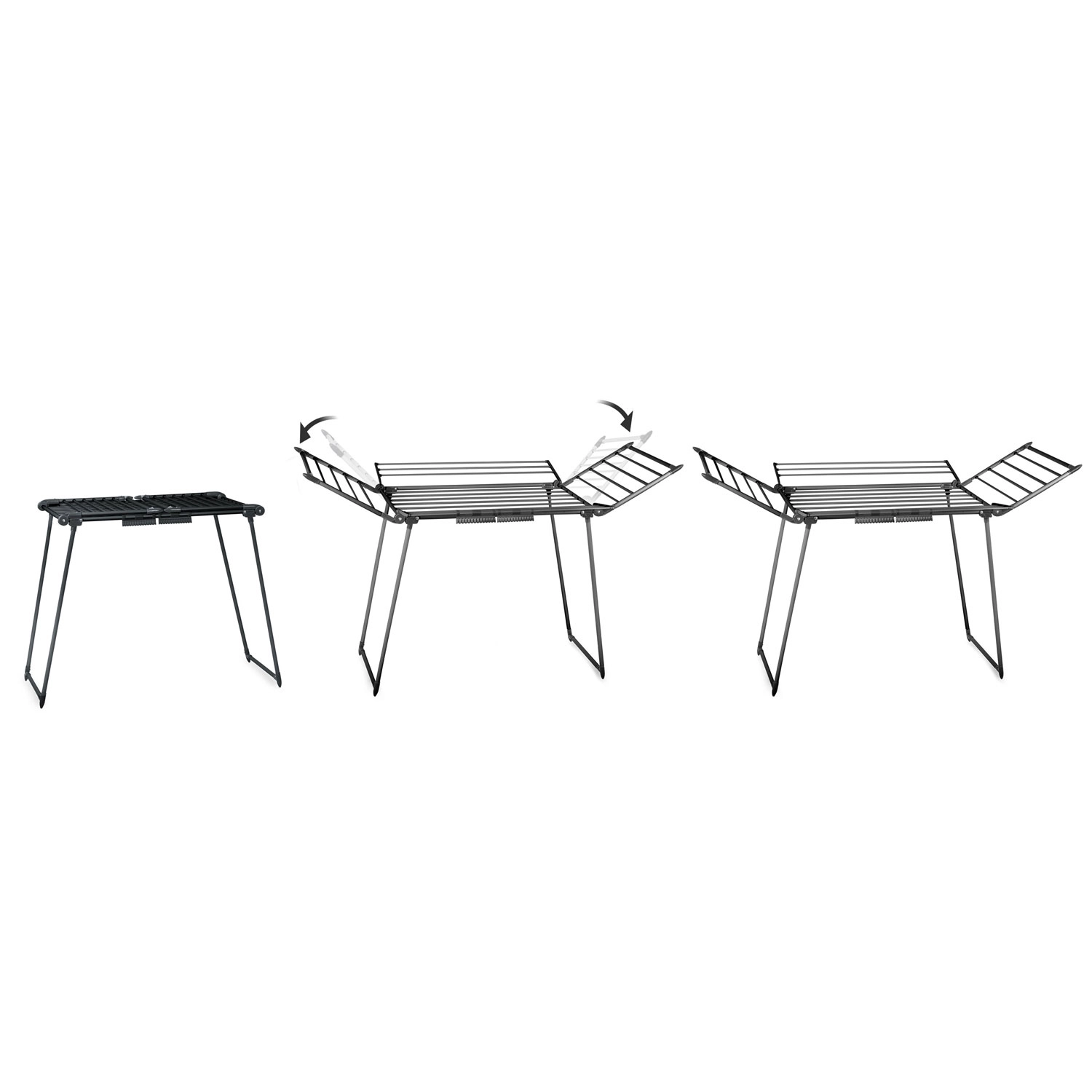 Barvana jeklena konstrukcija je čvrsta in stabilna, hkrati pa se sušilnik po sušenju hitro zloži v kompaktno obliko za prihranek prostora.
