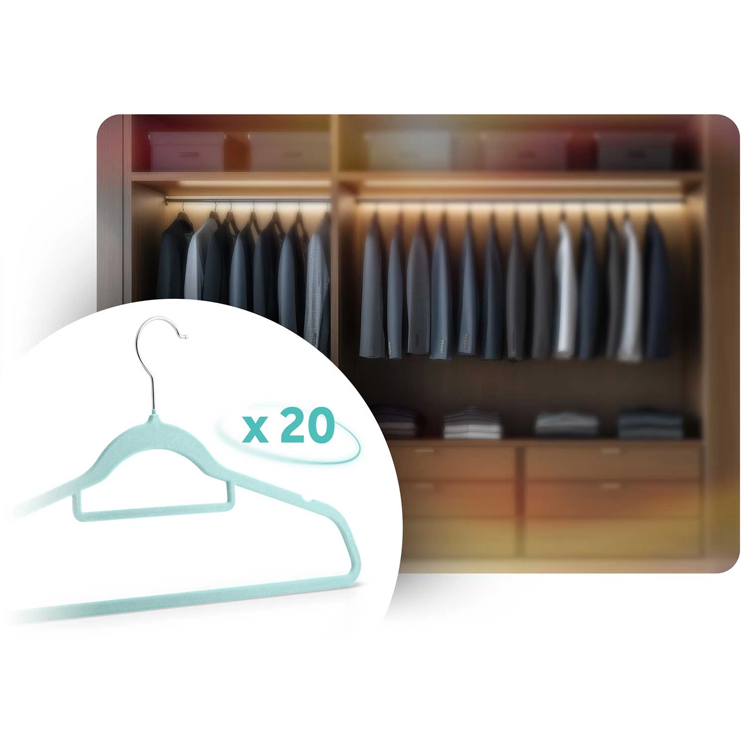Praktičen in stilski komplet velurastih obešalnikov MASSIDO prinaša red ter nežno nego vaših oblačil. Mehak velur tvori protizdrsno površino, ki preprečuje drsenje srajc, oblek in suknjičev, medtem ko trdno jedro iz PP ohranja obliko in se ne upogne niti pod težjimi kosi.