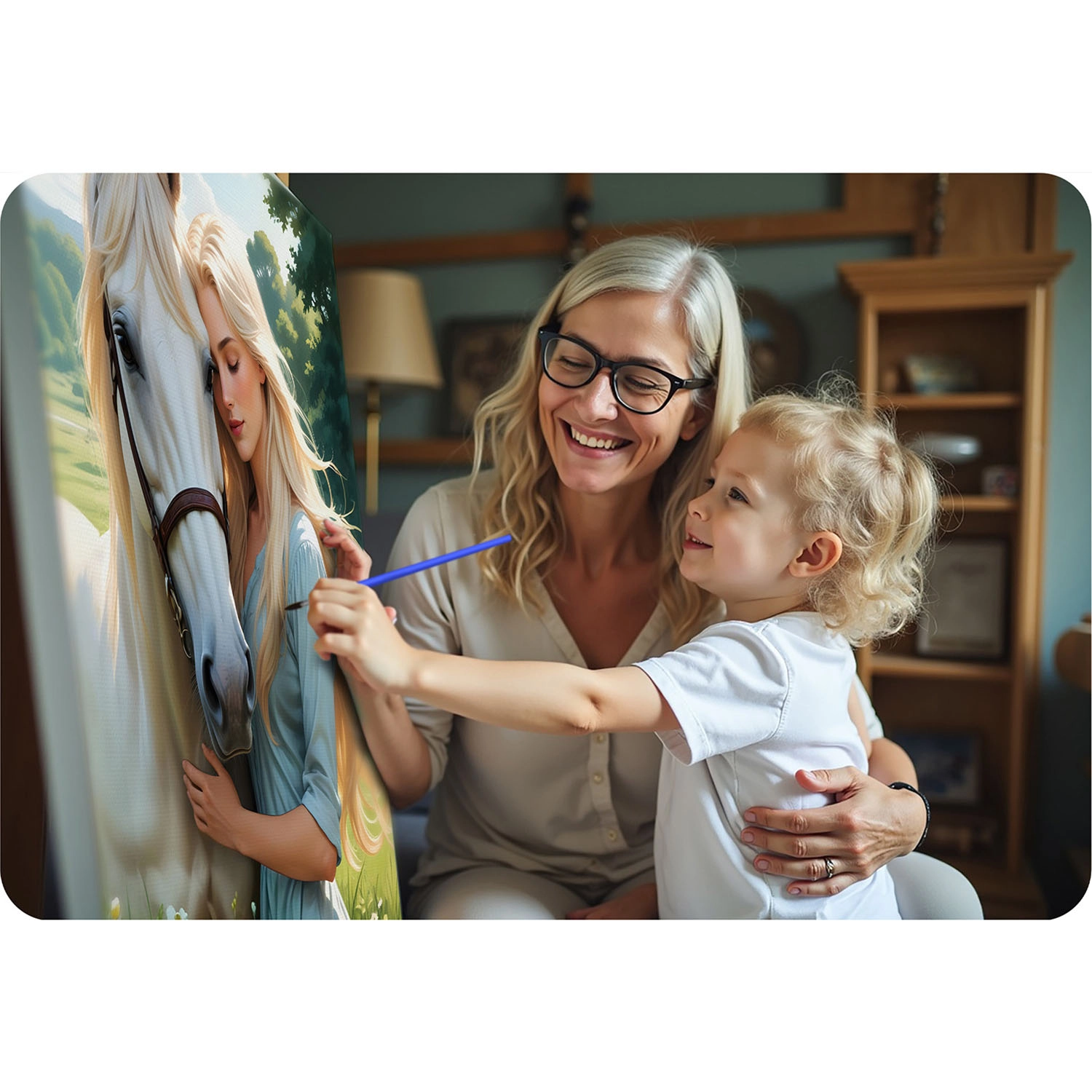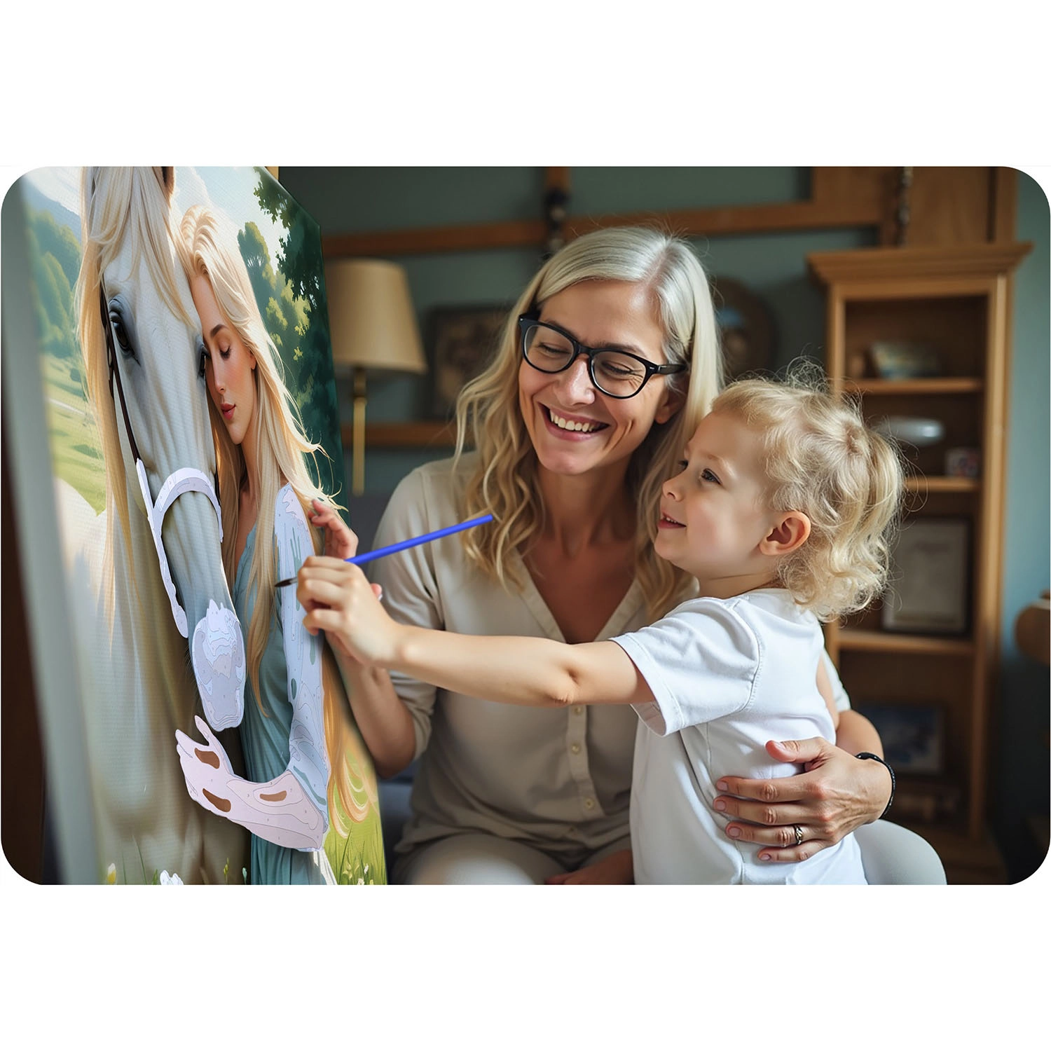 Odkrijte čar ustvarjanja s kreativnim kompletom slikanje po številkah 40×50 cm blagovne znamke Massido. Motiv portret ženske s konjem bo razveselil začetnike in napredne ustvarjalce. V paketu prejmete predtiskano platno na okvirju, 30 prekrivnih akrilnih barv, 3 čopiče in kljukice za obešanje. Barvna podslikava in oštevilčena polja olajšajo natančno barvanje ter zagotovijo čudovit, intenziven rezultat.