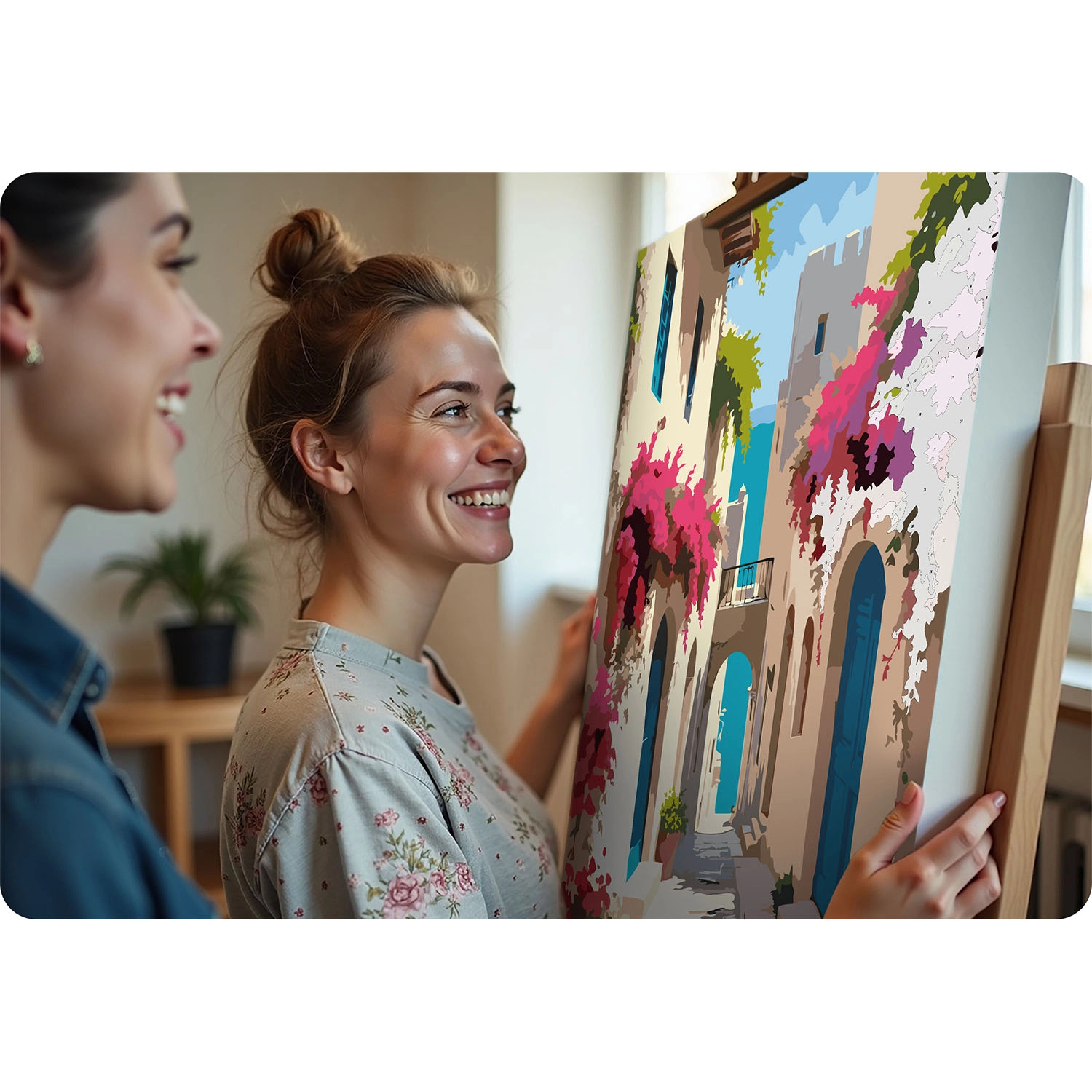 Odkrijte veselje do ustvarjanja s kakovostnim kompletom za slikanje po številkah 40 × 50 cm. Predtiskano platno na okvirju, 30 prekrivnih akrilnih barv, 3 čopiči gratis in set za obešanje vam olajšajo pot do čudovite slike z motivom mestne krajine – idealno za začetnike in napredne.