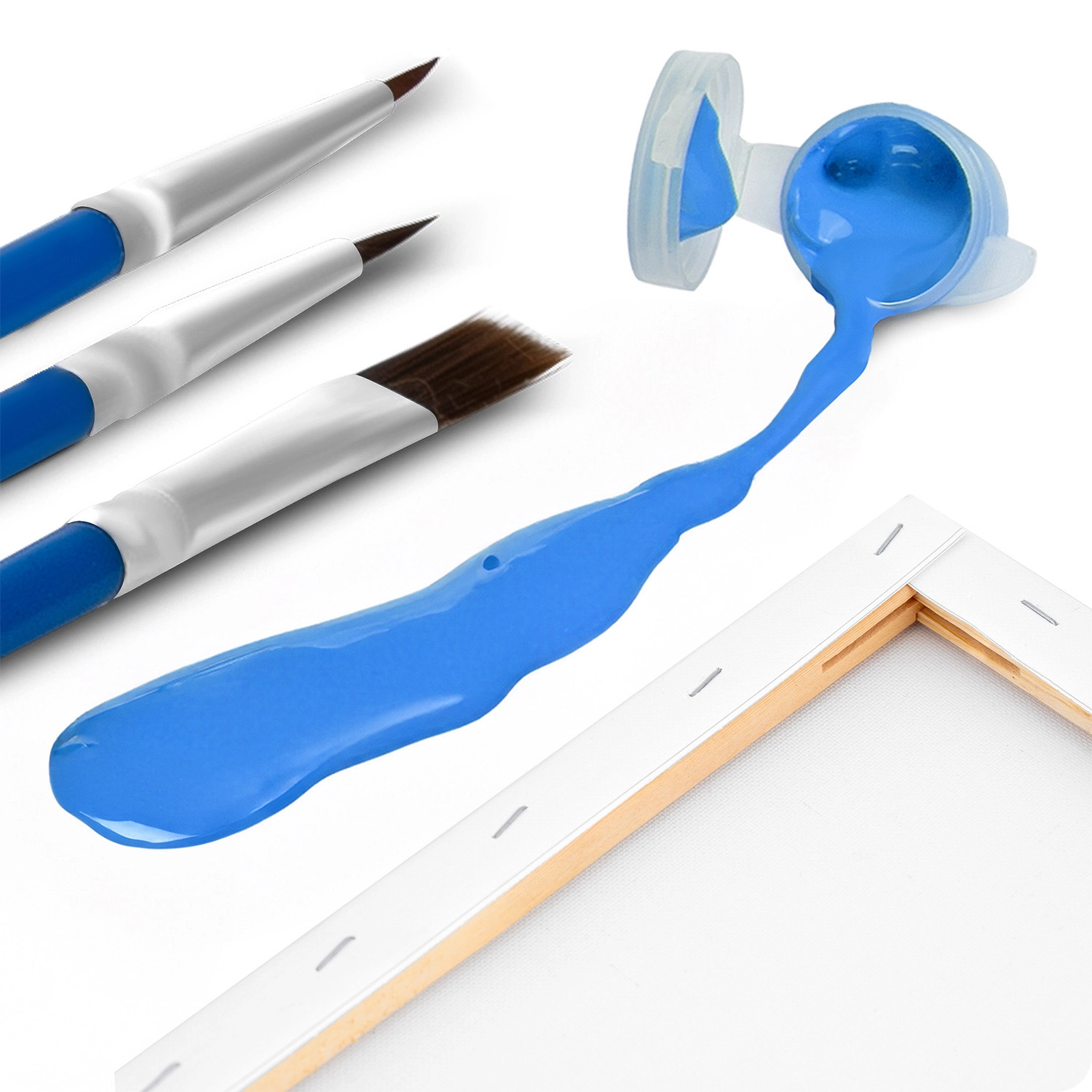 V kompletu najdete 30 intenzivnih akrilnih barv prijetne konsistence, ki jih ni treba redčiti, ter 3 čopiče za natančno delo od ozadij do najfinejših detajlov. Popolna prekrivnost zanesljivo prekrije črte in podlago, zato končana slika deluje profesionalno. Del kompleta je tudi obešalni set za hitro razstavitev končanega dela.