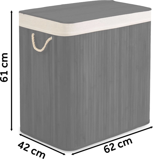 Vzdržljiva bambusova konstrukcija s pokrovom in vrvnimi ročaji se odlično poda v kopalnico, spalnico ali garderobo.