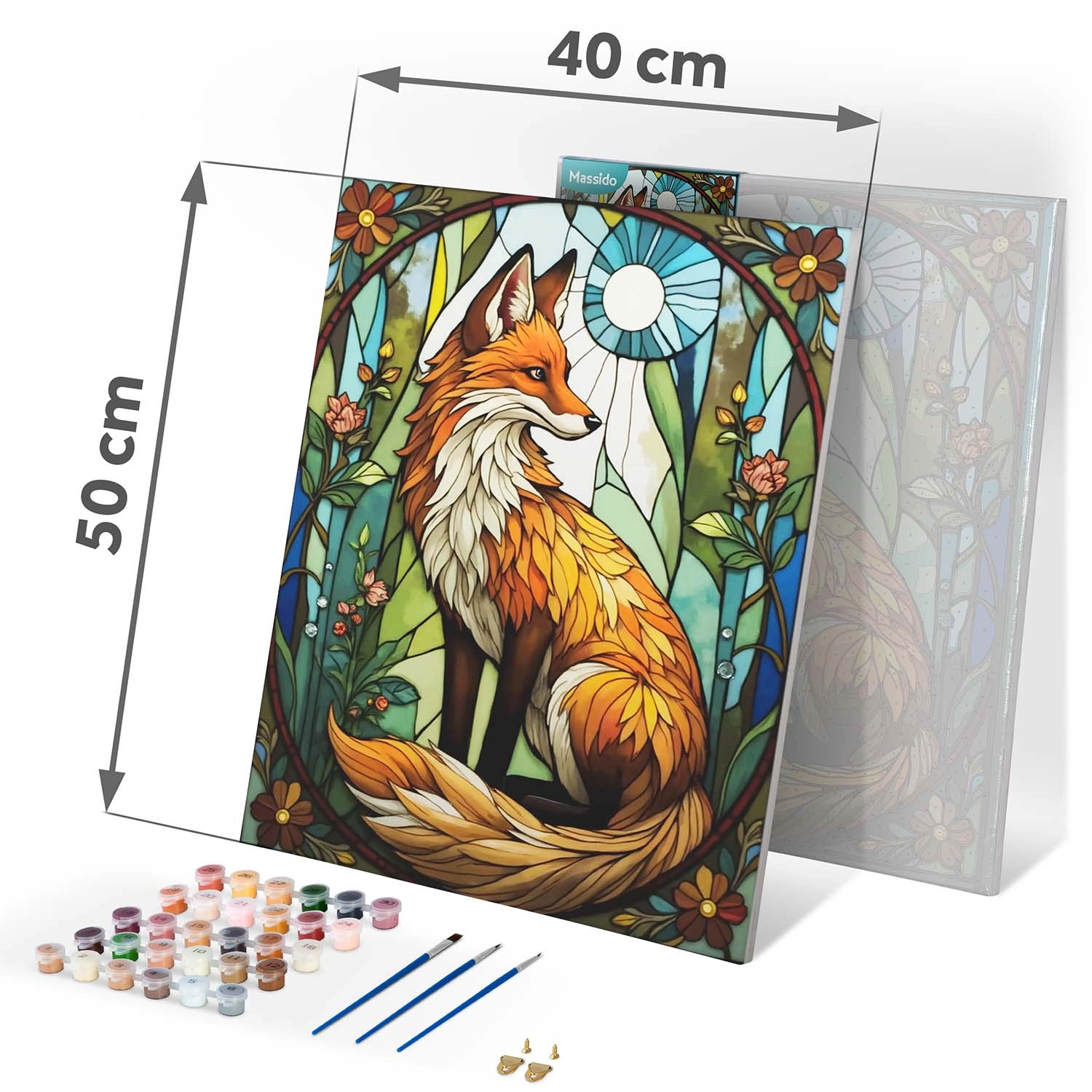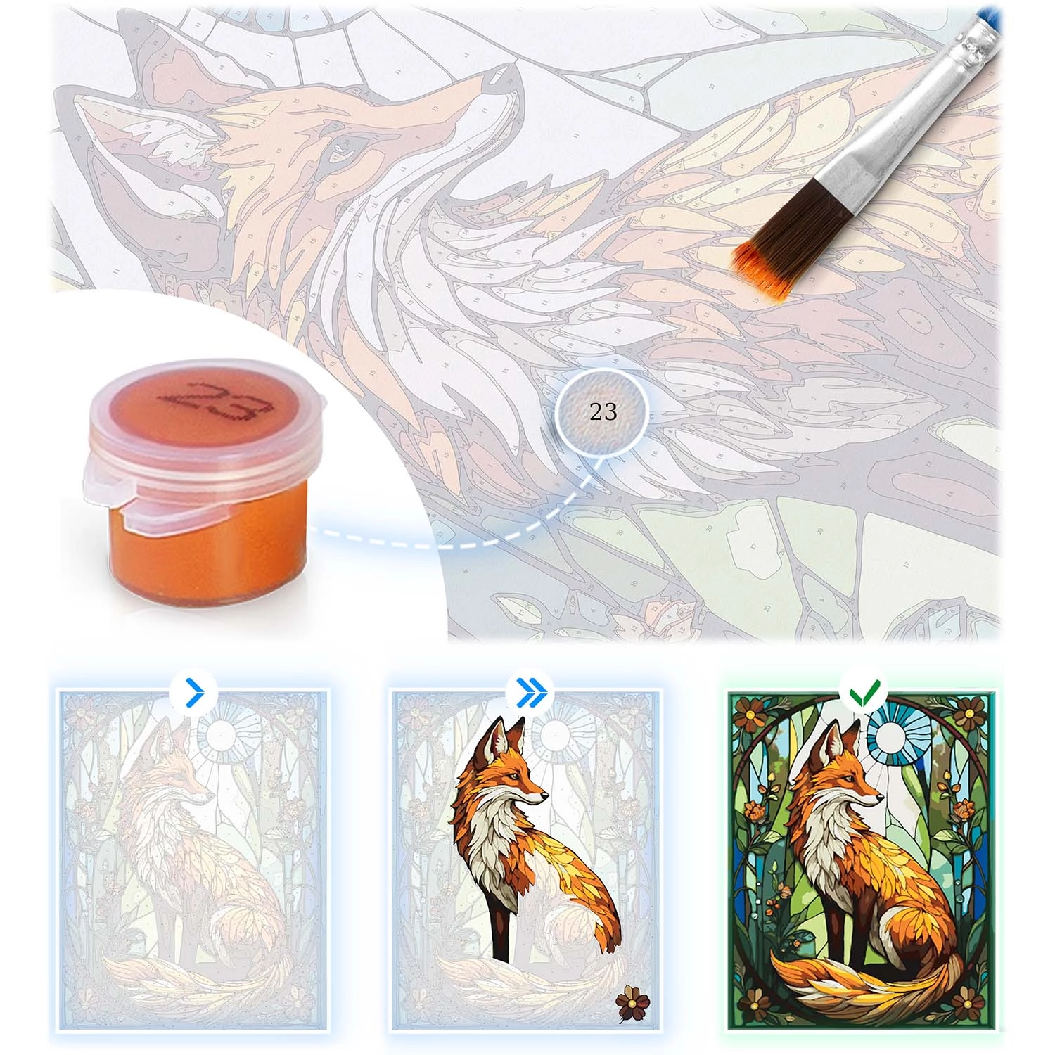 Predtiskano platno z oštevilčenimi polji in nežnim podrisom vas korak za korakom vodi do impresivne slike lisice – idealno tudi za začetnike.