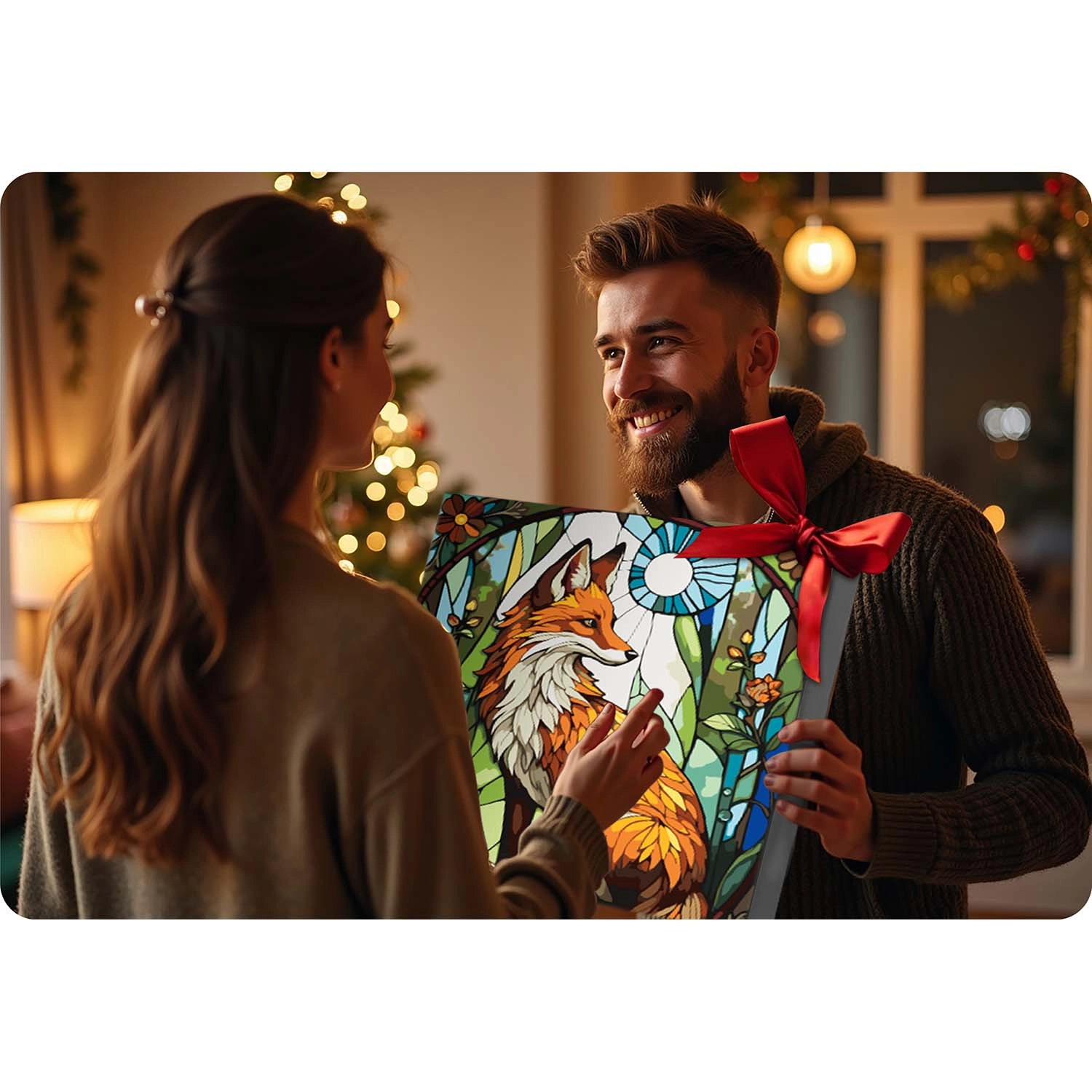 Končna slika bo izstopajoč okras vašega doma, privlačen motiv lisice pa razveseli kot osebno in izvirno darilo.