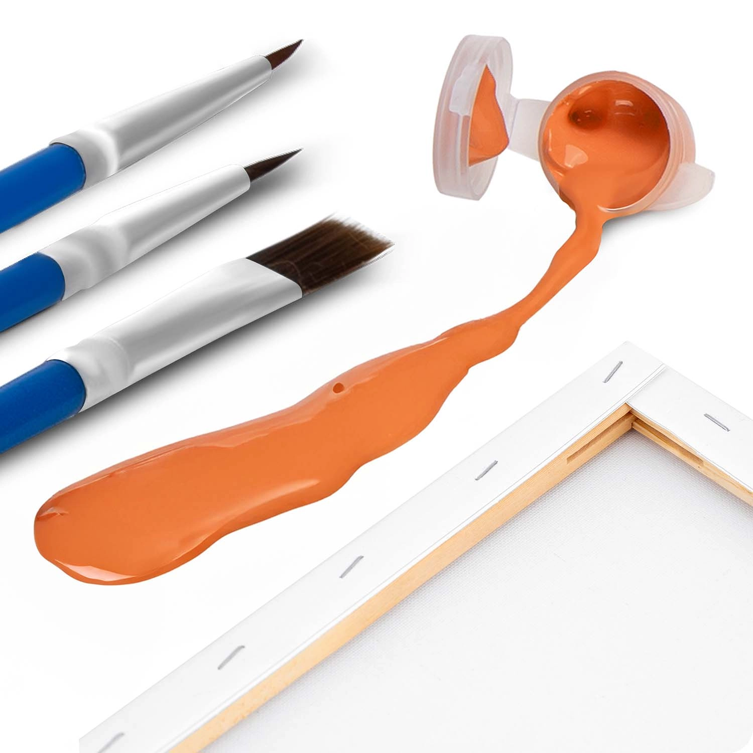 V pakiranju najdete 30 intenzivnih akrilnih barv, tri čopiče različnih velikosti (1 mm, 2 mm, 7 mm) in kljukice za enostavno obešanje končane slike.